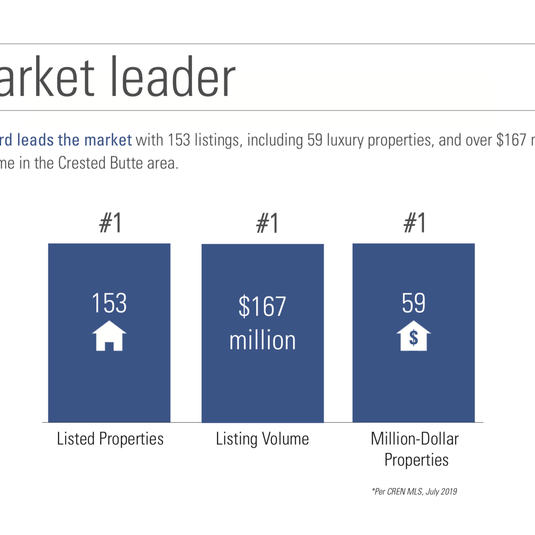 This dynamic activity translates to high confidence for travelers and investors seeking a cooler, peaceful and beautiful destination for relaxation and adventure. Bluebird continues to maintain #1 market share, leading the region in available properties, with over $167 million in volume and 60 properties priced above $1 million.