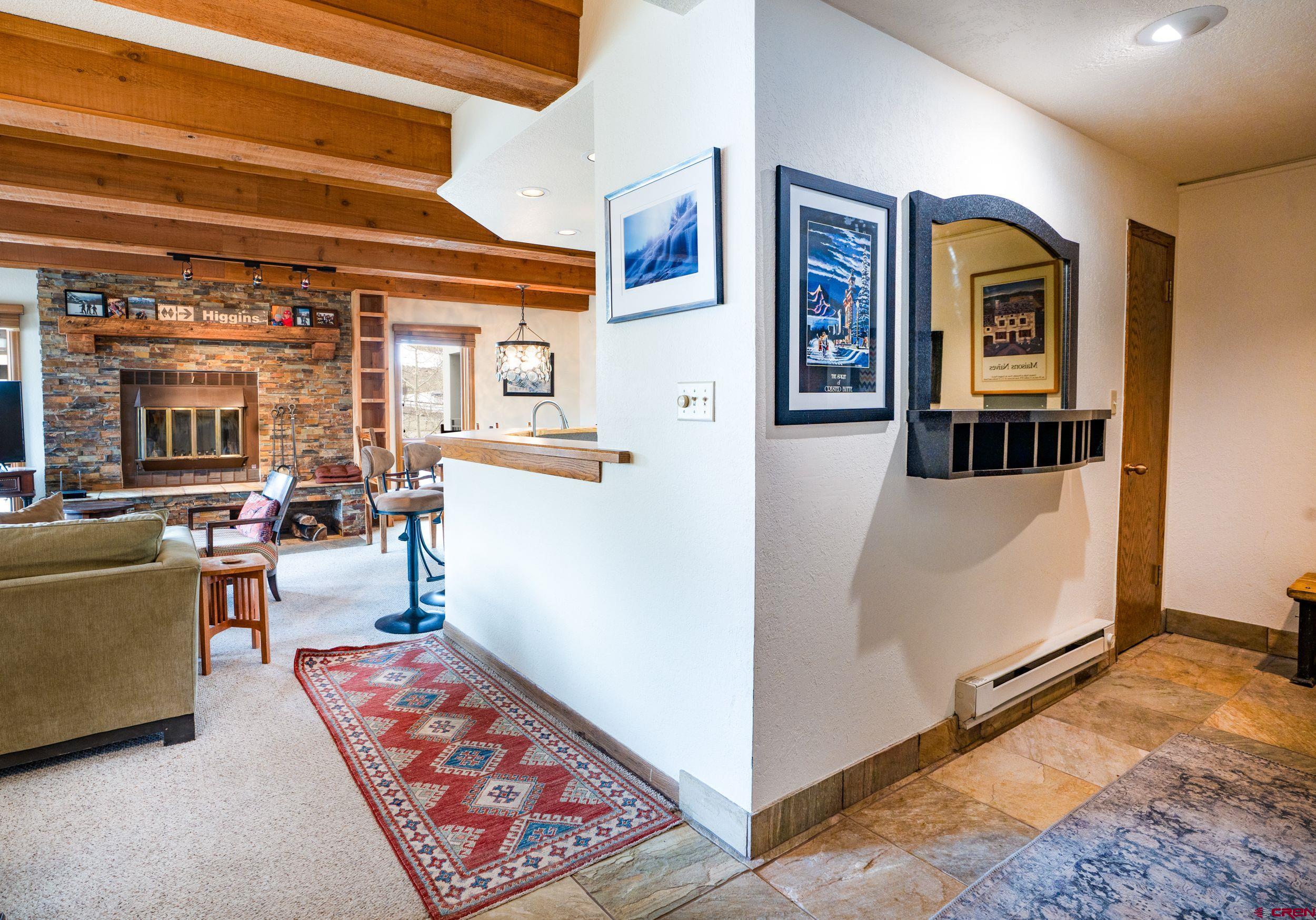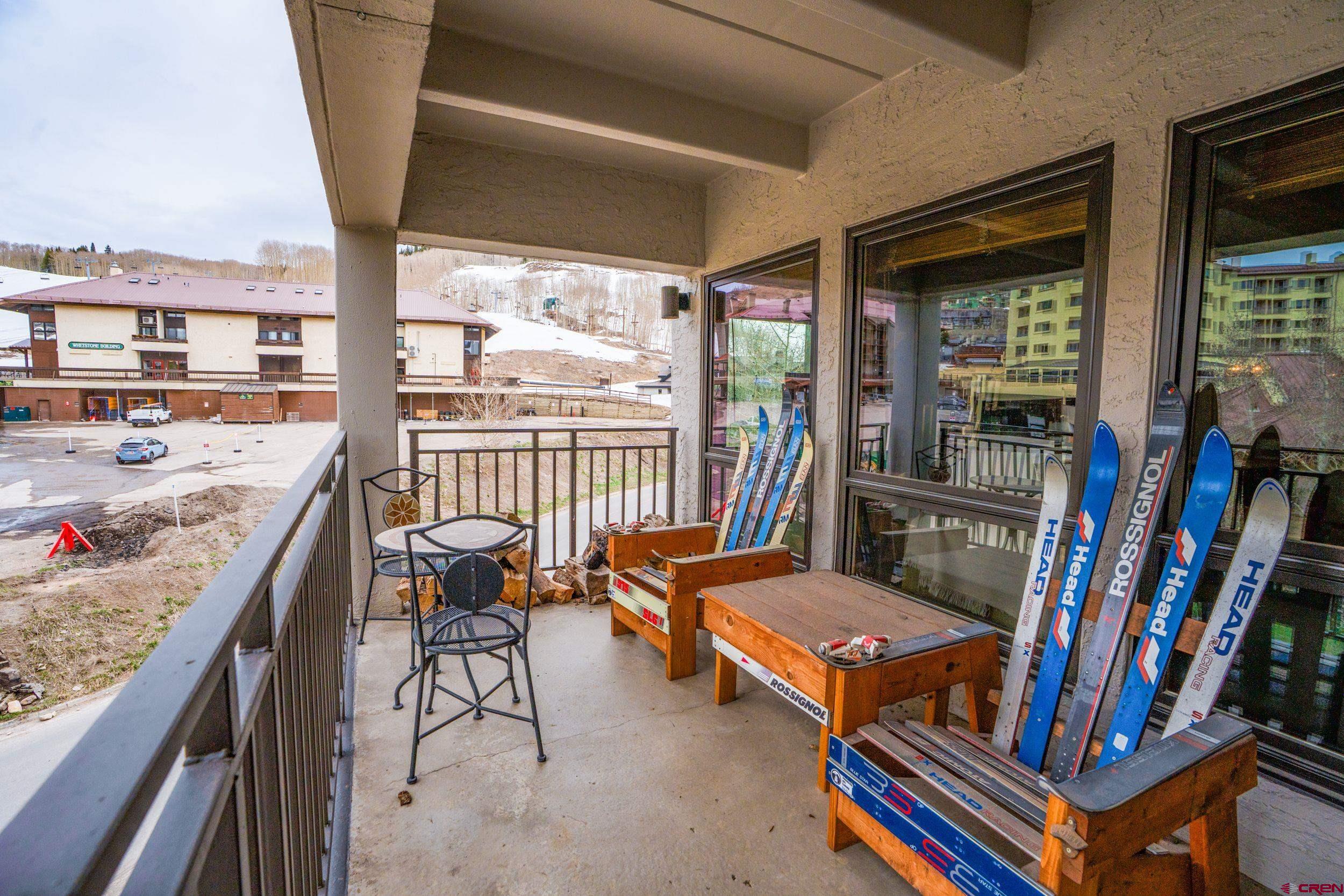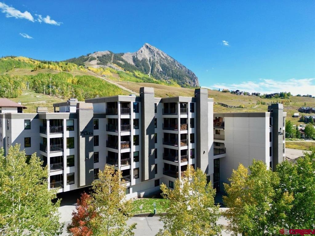 This spacious and well maintained 3 bedroom condo features a beautiful stacked rock working wood fireplace adding to the mountain ambience . It offers in-unit laundry, slate entry, large locking owners closet, and numerous upgrades throughout. The owners are including a tasteful furnishings package, making it move in ready! Conveniently located walking distance to the slopes, base area, and free shuttle service. When not outside enjoying the Crested Butte lifestyle, relax from your generous outdoor deck to take in great views of Mt. Crested Butte and the surrounding mountains. Plaza amenities include exterior and interior hot tubs, steam room and sauna, outdoor grilling area, covered parking, tennis courts, ski lockers and a fun onsite restaurant. Previous assessments covered the installation of new windows and sliders throughout. Recently the entire building had a major refresh that included new carpet and updates to the lobby area, a complete roof replacement, exterior stucco and paint, all of which has been paid for and completed. Remaining to be completed, and also paid for, is the addition of a fitness facility for the complex. The HOA has been working diligently to get the entire building revitalized and it shows!