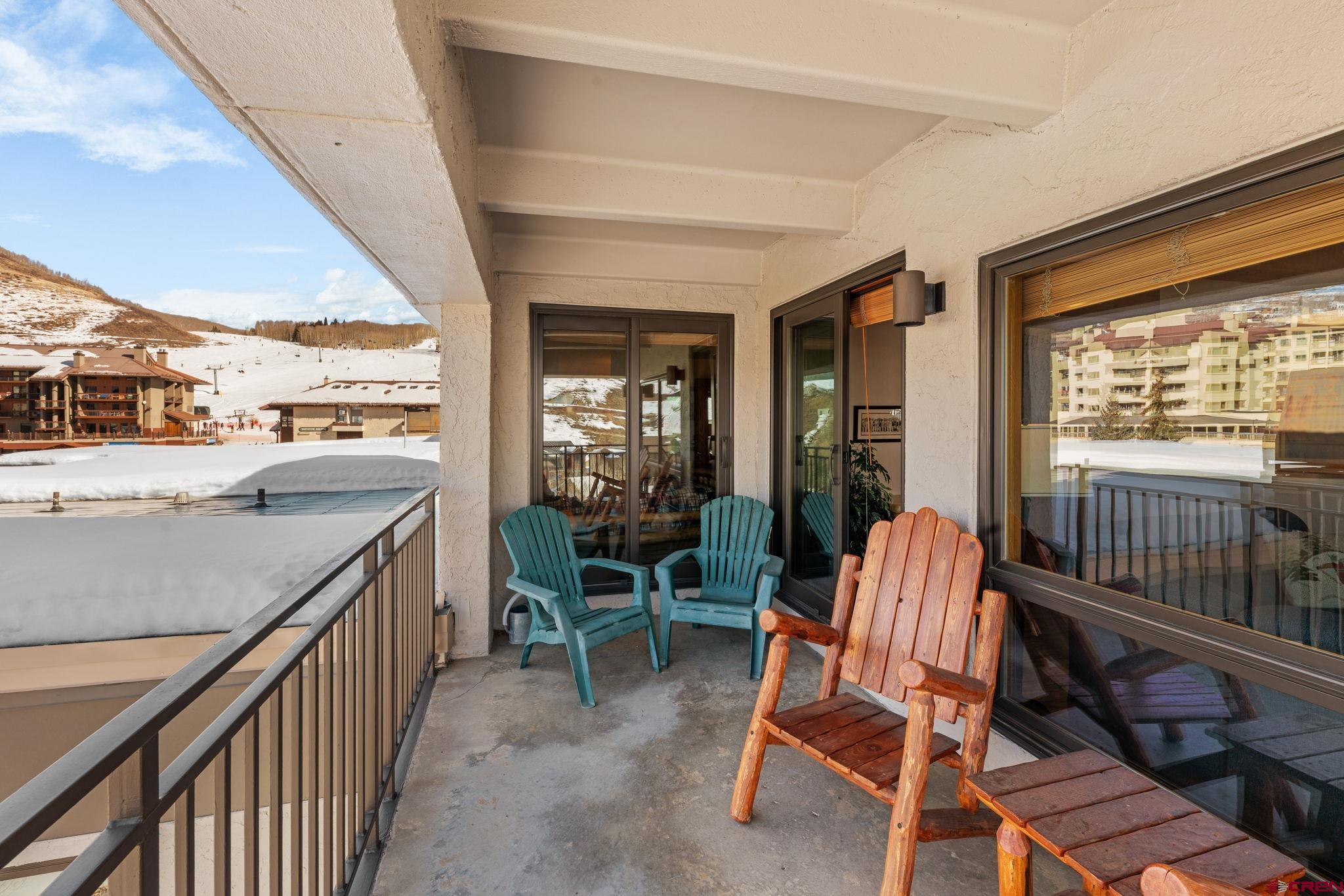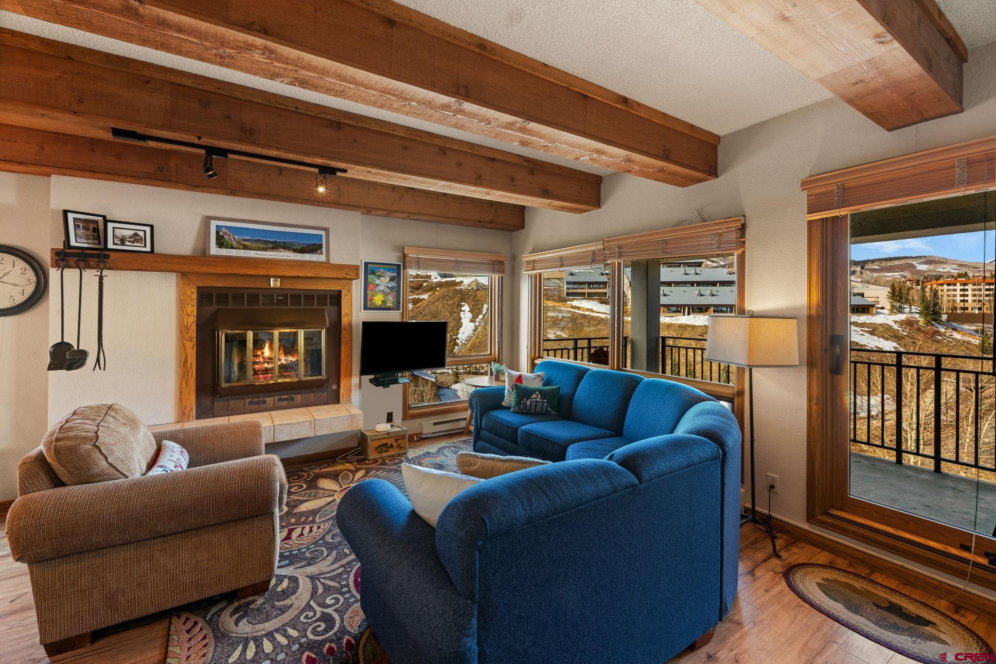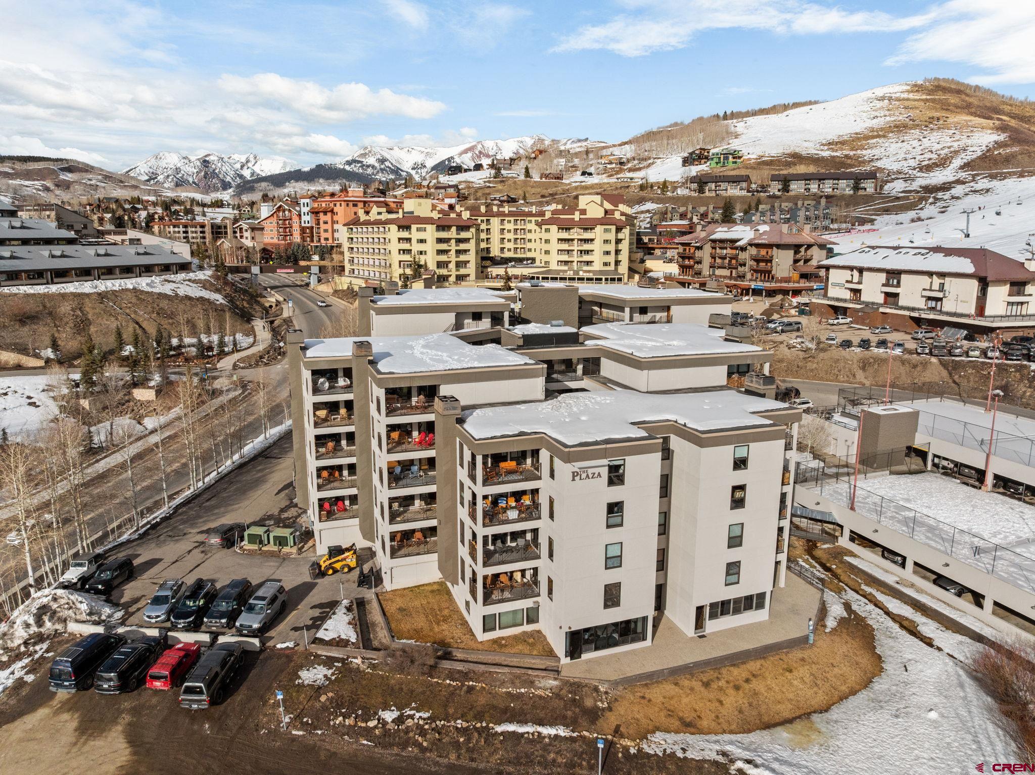 One of just four penthouse residences at The Plaza, Unit #638 offers a quiet top-floor location, privacy, and classic mountain charm in the heart of Mt. Crested Butte! The Plaza is just a short walk to the main ski lifts and is one of Mt. CB’s most amenity-rich complexes. Owners and guests enjoy covered parking, two hot tubs, a steam room, ski lockers, tennis and pickleball courts, game area, and the convenience of a popular on-site restaurant for lively après socializing. The HOA is also actively working toward adding a new fitness facility, further enhancing the lifestyle and long-term value. New owners will benefit from some massive renovations in recent years, including a fully redone stucco exterior, a new roof, a beautifully remodeled lobby and common spaces, and upgraded internet. To reach Unit #638, take the elevator to the top floor. This condo features 2 bedrooms, 2 bathrooms, a spacious entryway, in-unit laundry, authentic woodburning fireplace (with firewood provided by the HOA!), and open concept living. The exposed wood beams add warm rustic character, and the private balcony offers a place to take in the fresh mountain air with up-valley with views of the West Elk Mountain range. The primary suite includes an ensuite bath, while the second bedroom with custom log bunk beds offers flexible accommodations for family or guests. This unit is a popular rental with limited showing availability for the rest of winter! Offered fully furnished and turnkey, it’s ready for immediate enjoyment or rental income. For buyers seeking walkable lift access, lots of amenities, and true lock-and-leave convenience, Plaza #638 delivers rare penthouse ownership in a premier location!