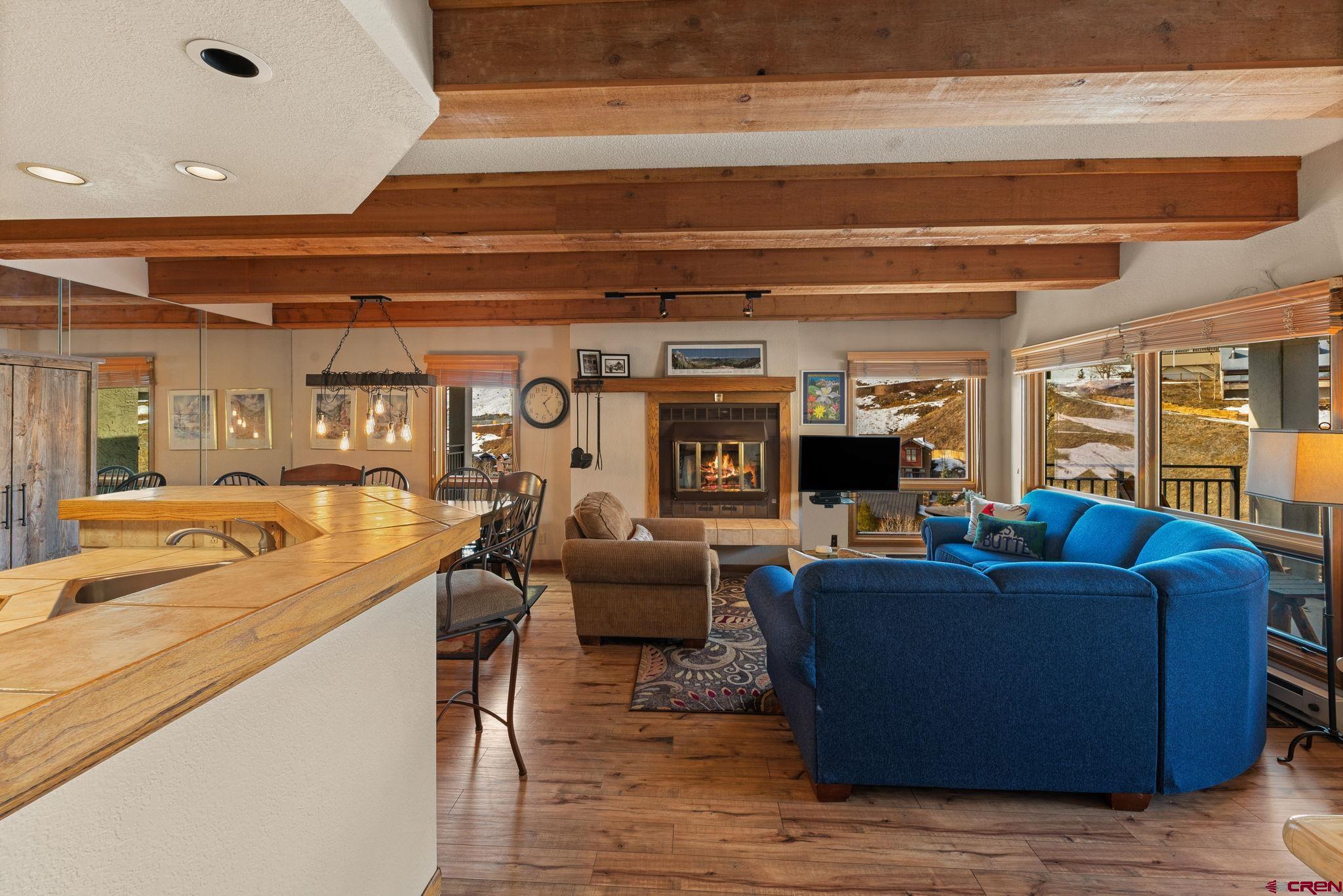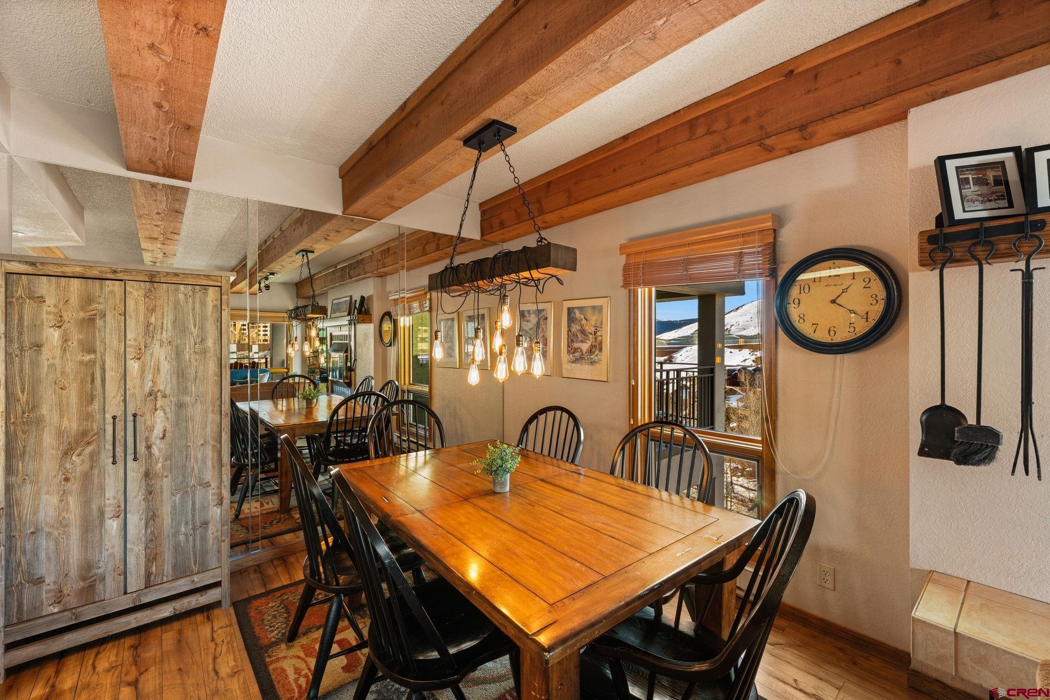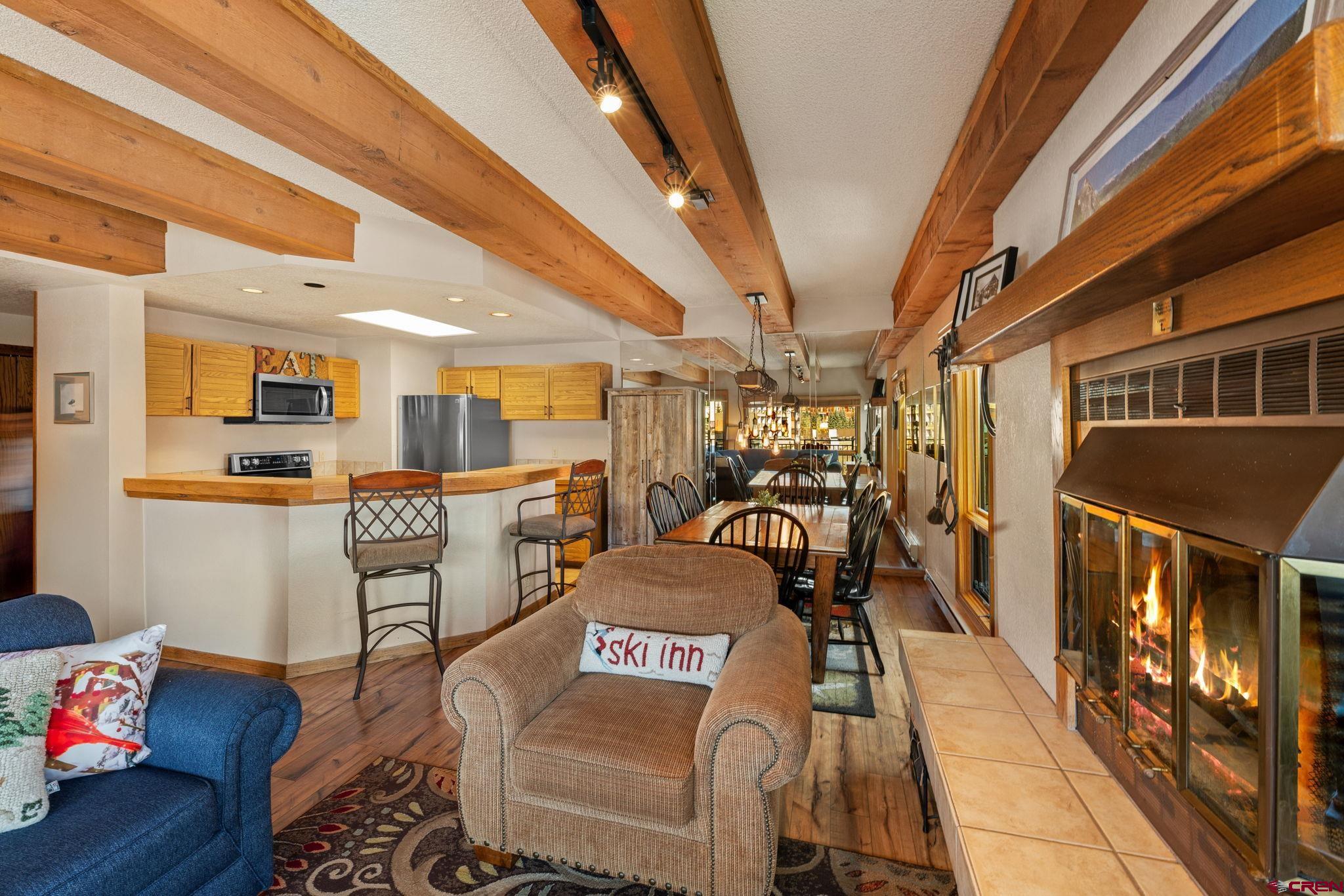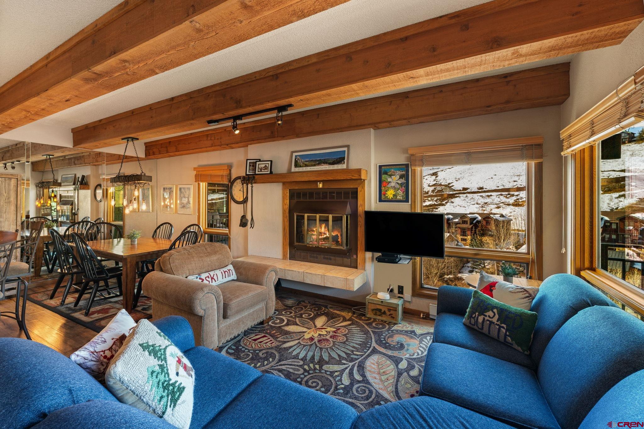One of just four penthouse residences at The Plaza, Unit #638 offers a quiet top-floor location, privacy, and classic mountain charm in the heart of Mt. Crested Butte! The Plaza is just a short walk to the main ski lifts and is one of Mt. CB’s most amenity-rich complexes. Owners and guests enjoy covered parking, two hot tubs, a steam room, ski lockers, tennis and pickleball courts, game area, and the convenience of a popular on-site restaurant for lively après socializing. The HOA is also actively working toward adding a new fitness facility, further enhancing the lifestyle and long-term value. New owners will benefit from some massive renovations in recent years, including a fully redone stucco exterior, a new roof, a beautifully remodeled lobby and common spaces, and upgraded internet. To reach Unit #638, take the elevator to the top floor. This condo features 2 bedrooms, 2 bathrooms, a spacious entryway, in-unit laundry, authentic woodburning fireplace (with firewood provided by the HOA!), and open concept living. The exposed wood beams add warm rustic character, and the private balcony offers a place to take in the fresh mountain air with up-valley with views of the West Elk Mountain range. The primary suite includes an ensuite bath, while the second bedroom with custom log bunk beds offers flexible accommodations for family or guests. This unit is a popular rental with limited showing availability for the rest of winter! Offered fully furnished and turnkey, it’s ready for immediate enjoyment or rental income. For buyers seeking walkable lift access, lots of amenities, and true lock-and-leave convenience, Plaza #638 delivers rare penthouse ownership in a premier location!