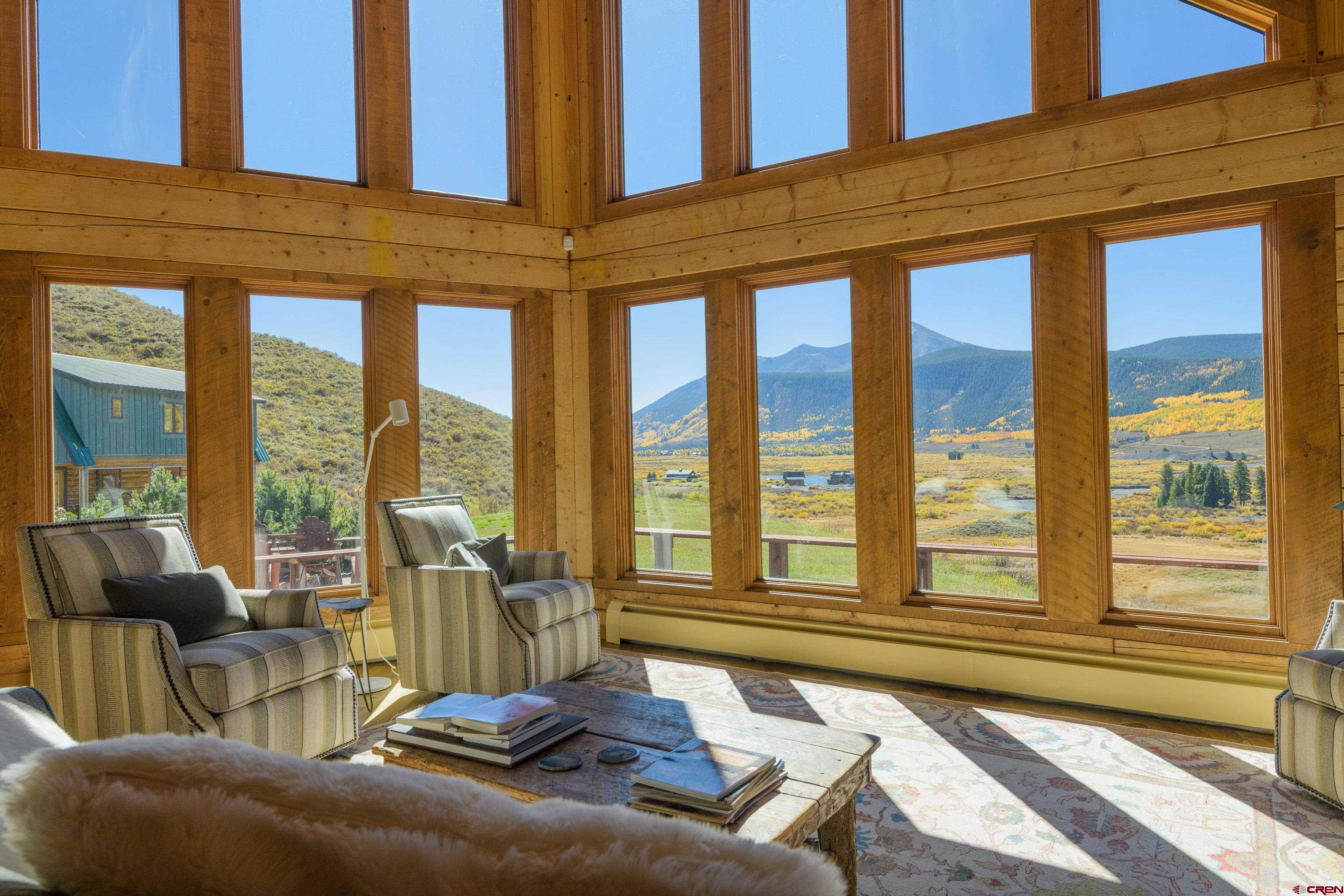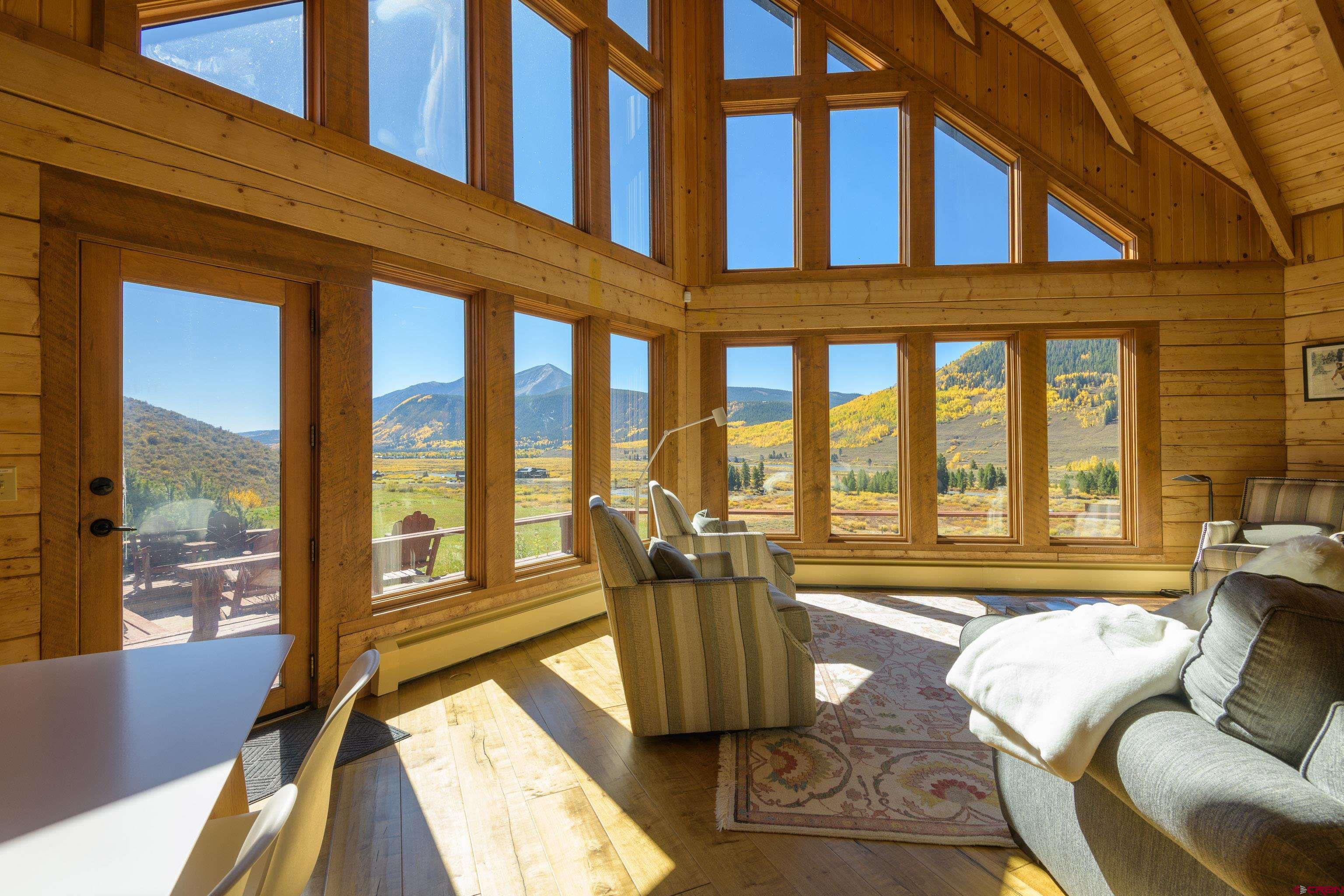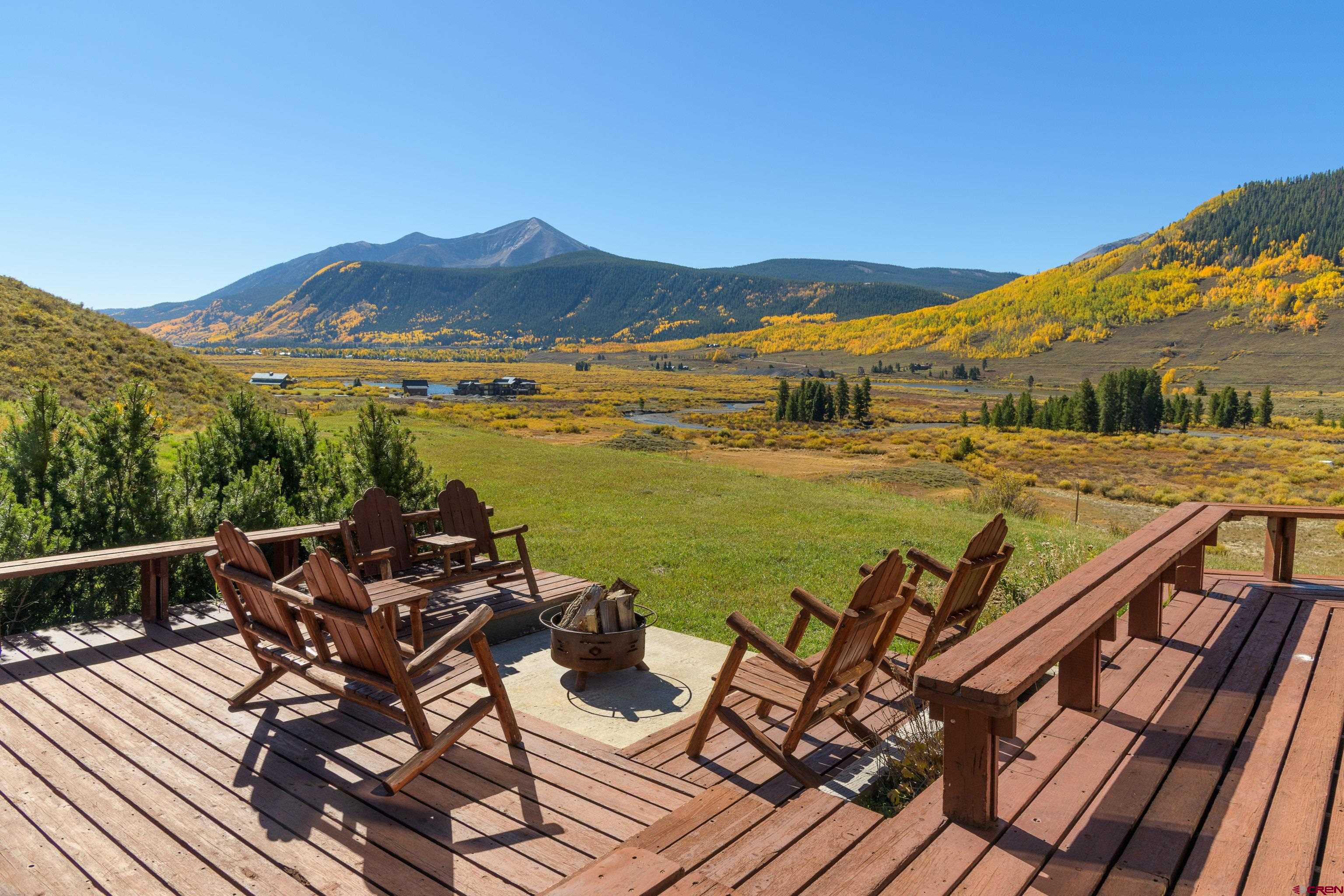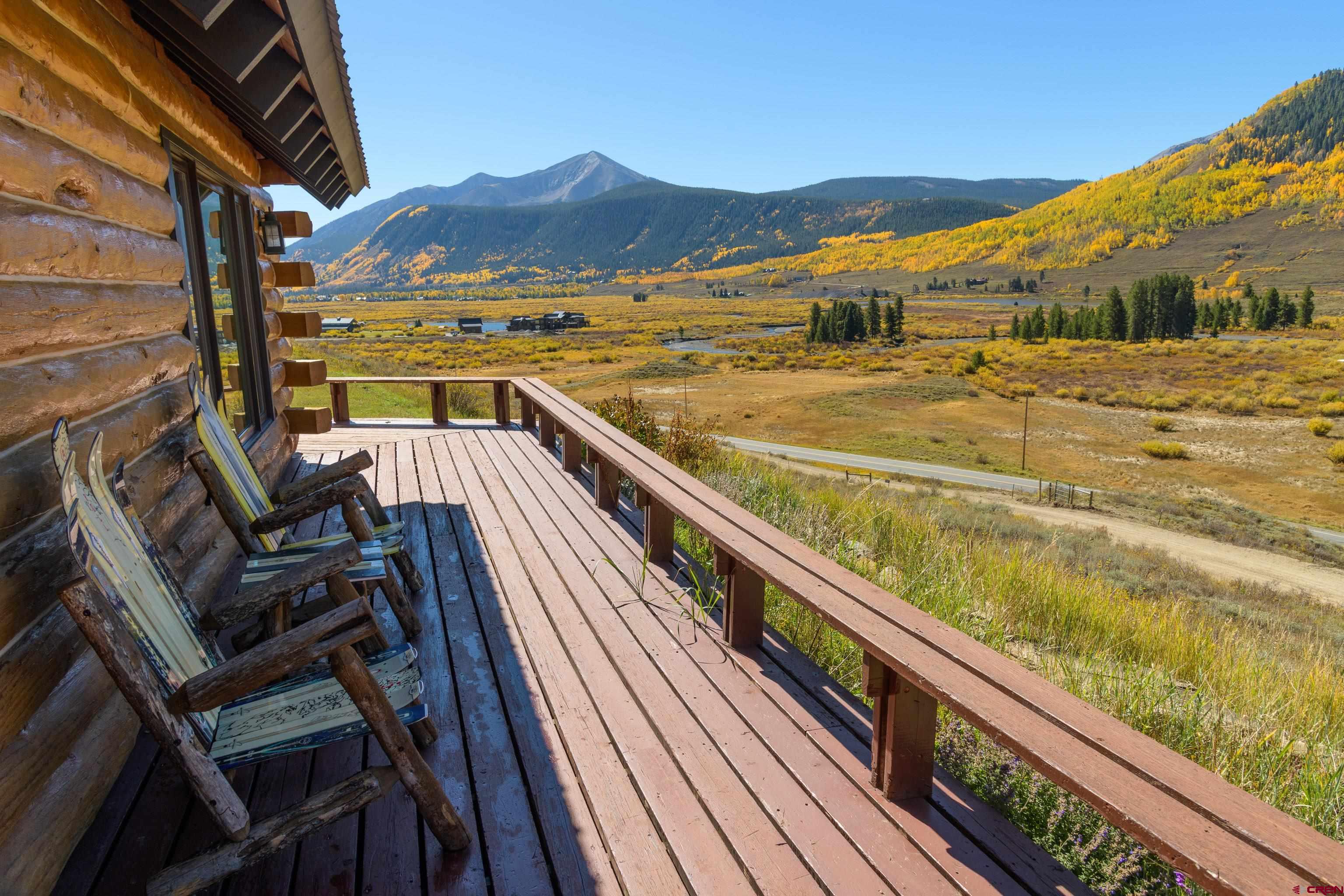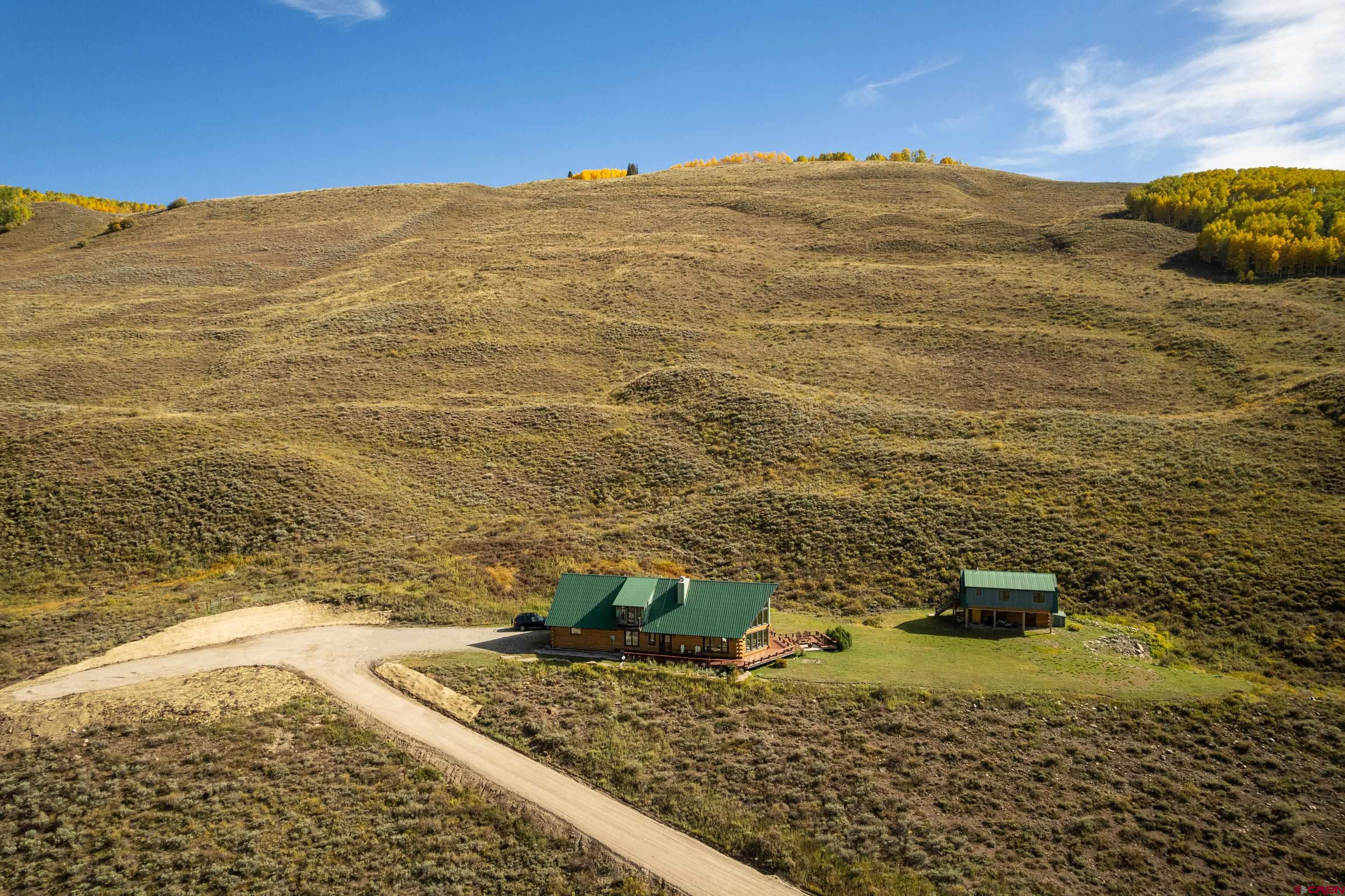 This is a very rare opportunity to own a larger parcel of land with a main residence and an accessory residence with no HOA and stunning views of the entire Crested Butte and Slate River valley. The 10.35 acres hillside setting overlooks open space, Peanut Lake, Mt. Whetstone, Mt. Emmons and the Oh-Be-Joyful recreation area. Enjoy southern and western exposure with windows from the floor to the top of vaulted ceilings for all day sun and beautiful sunsets. The home features 4 bedrooms including a large master suite with a private deck, 3 bathrooms, a game room and a wood burning fireplace as a focal point in the open great room. There is an additional loft space overlooking the living room that has a television. The open kitchen has granite countertops, newer appliances and lots of cabinets and storage. The home is being sold fully furnished excluding the artwork and a few personal items. The 608 square foot Guest house is a comfortable private space with a full kitchen, living area and includes 1 private bedroom and a 3/4 bath. Perfect for overflow guest space, a kids hangout are or even used for an on site caretaker. It is located above a clean and organized storage area/shop.There are trails on the property for horseback riding or hiking and very close access to popular mountain biking and hiking trails including Lupine, Gunsight and the Lower Loop. The expansive outdoor space includes a level grassy yard, large deck, and a fire pit all overlooking the meandering Slate River below. All this and only five minutes to the town of Crested Butte or the ski area.