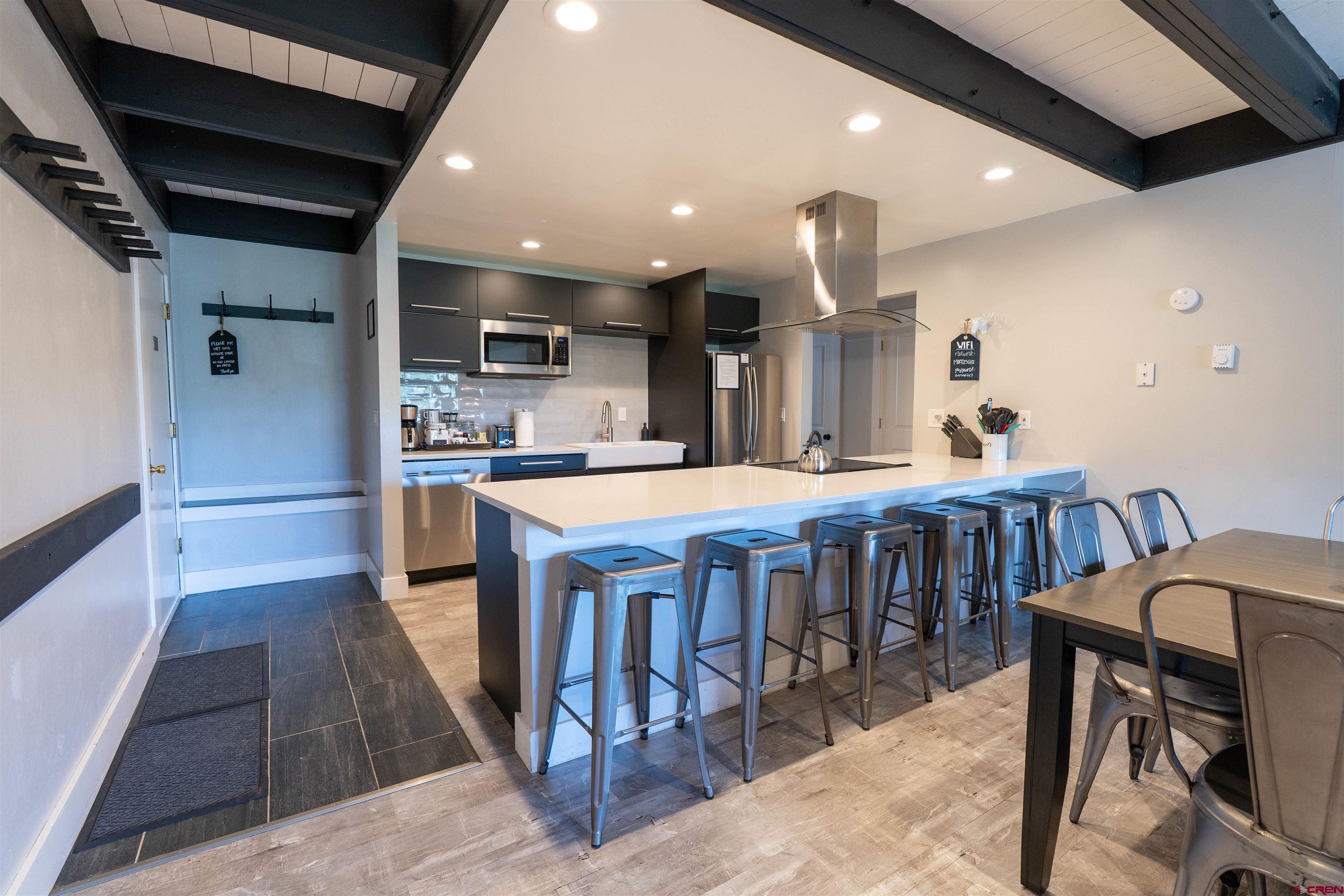Looking to make the most of your time in the mountains? San Moritz K202 is the one you’re looking for! This unit enjoys true ski-in/ski-out access and is ideally located near the Westwall Lift at Crested Butte Mountain Resort. It offers mountain views from the covered patio, and has a wood burning fireplace, an indoor hot tub and sauna in the building, and a complimentary private shuttle service to easily get to the base area or the shops and restaurants in downtown Crested Butte in the winter. This updated and generously sized 3 bedroom condo was fully remodeled in 2019 and is in turn-key condition and ready for you, with all furnishings included. The kitchen features a large island with quartz countertops, bar seating, stainless steel appliances, and plenty of cabinet space. There are two full bathrooms and convenient in-unit laundry. Two of the bedrooms and the living room have direct access to the west-facing covered patio, where you can take in the mountain views and epic Colorado sunsets. Off the patio you’ll also find the storage closet where you can keep your skis and gear. The third bedroom is set up as a bunk room, adding to this unit’s rental flexibility. The layout of the unit allows for multiple configurations, offering the ability to lock-off one bedroom and bathroom as a hotel-style suite that could be rented separately. One could live in the 2-bedroom side and rent out the lock-off, short-term rent the entire condo, or live there full time. San Moritz has excellent on-site property management, or you can choose to manage your rental yourself. This complex allows pets for renters, which is hard to find on Mt. Crested Butte, and which adds to the rental potential of the unit. The San Moritz is a desirable complex with a hard to beat location, and this unit is in a privileged location within the complex. Parking is easy and the unit is right inside the building door. Go from your home to the slopes in just moments and easily ride your bike from your condo to the trails. The Crested Butte mountain lifestyle awaits!