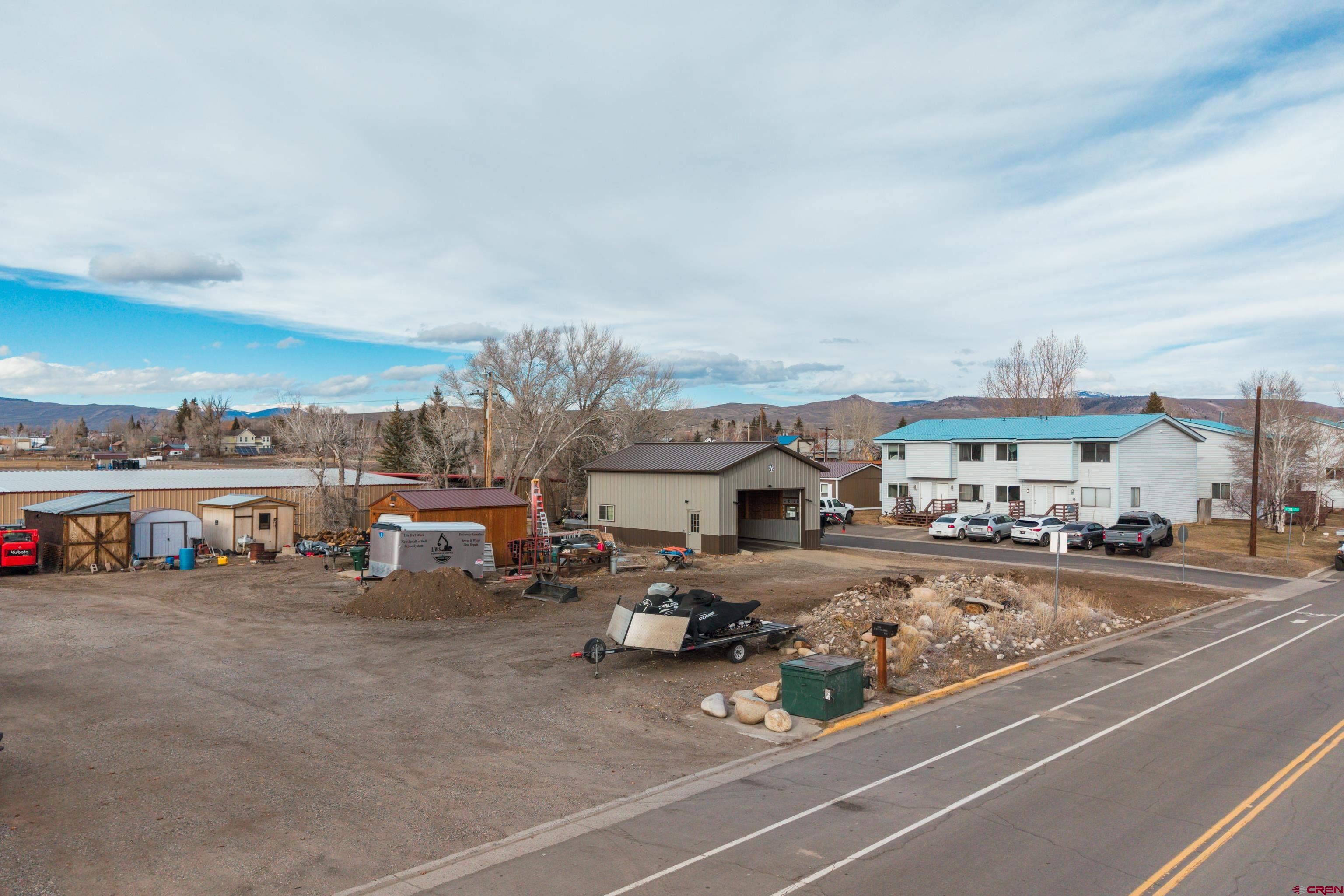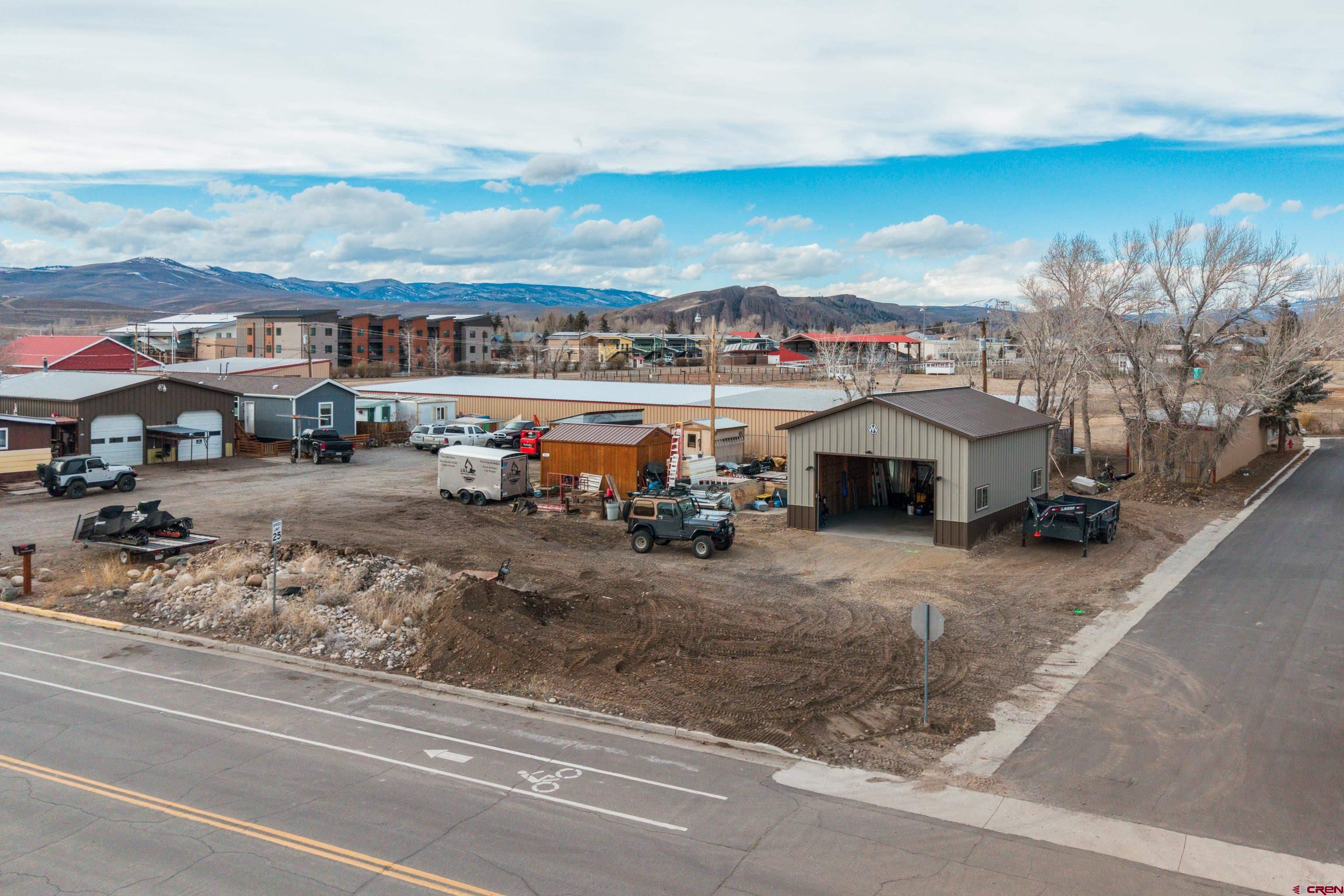 High density residential development opportunity within Gunnison city limits on a rare 0.47 acre parcel consisting of six six lots along W Rio Grande Avenue. With increasing demand for in-town housing and limited larger parcels available, this property presents an attractive opportunity for builders, investors, or buyers looking to explore higher-density residential possibilities consistent with city zoning. The property currently includes a 768 sq ft detached garage/shop (built in 2022) along with multiple storage sheds, providing immediate utility for contractors, equipment storage, or small business operations while future plans are developed. Electric service is on the property, and water and sewer taps are present on-site, though utilities are not currently connected to any structures. The property offers scenic views and a flexible building footprint, while paved year-round access and convenient proximity to downtown Gunnison, schools, and community amenities enhance the property's long-term potential. Whether used for immediate shop and storage space or positioned for future residential development, this property offers a unique combination of location, scale, and opportunity within Gunnison.