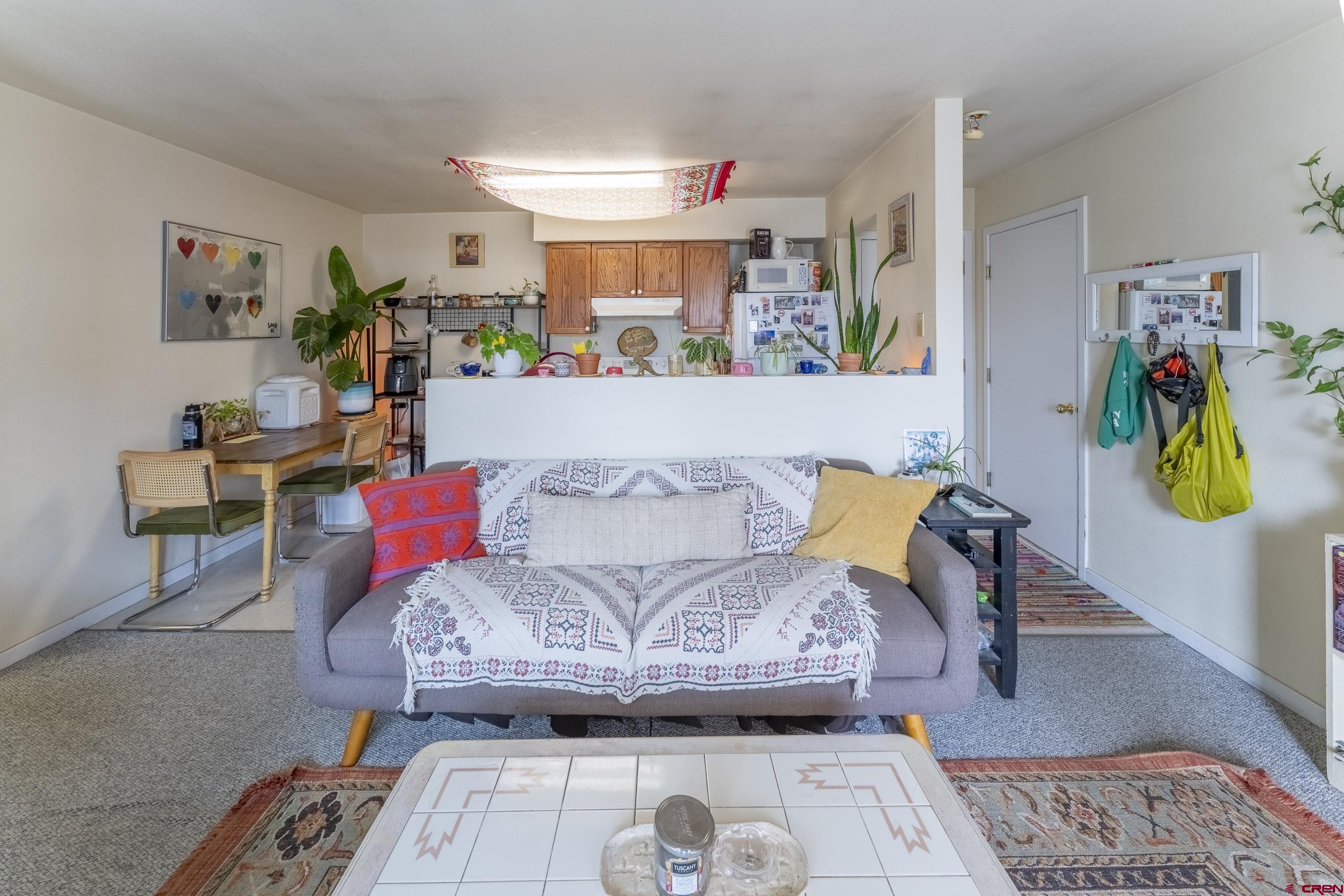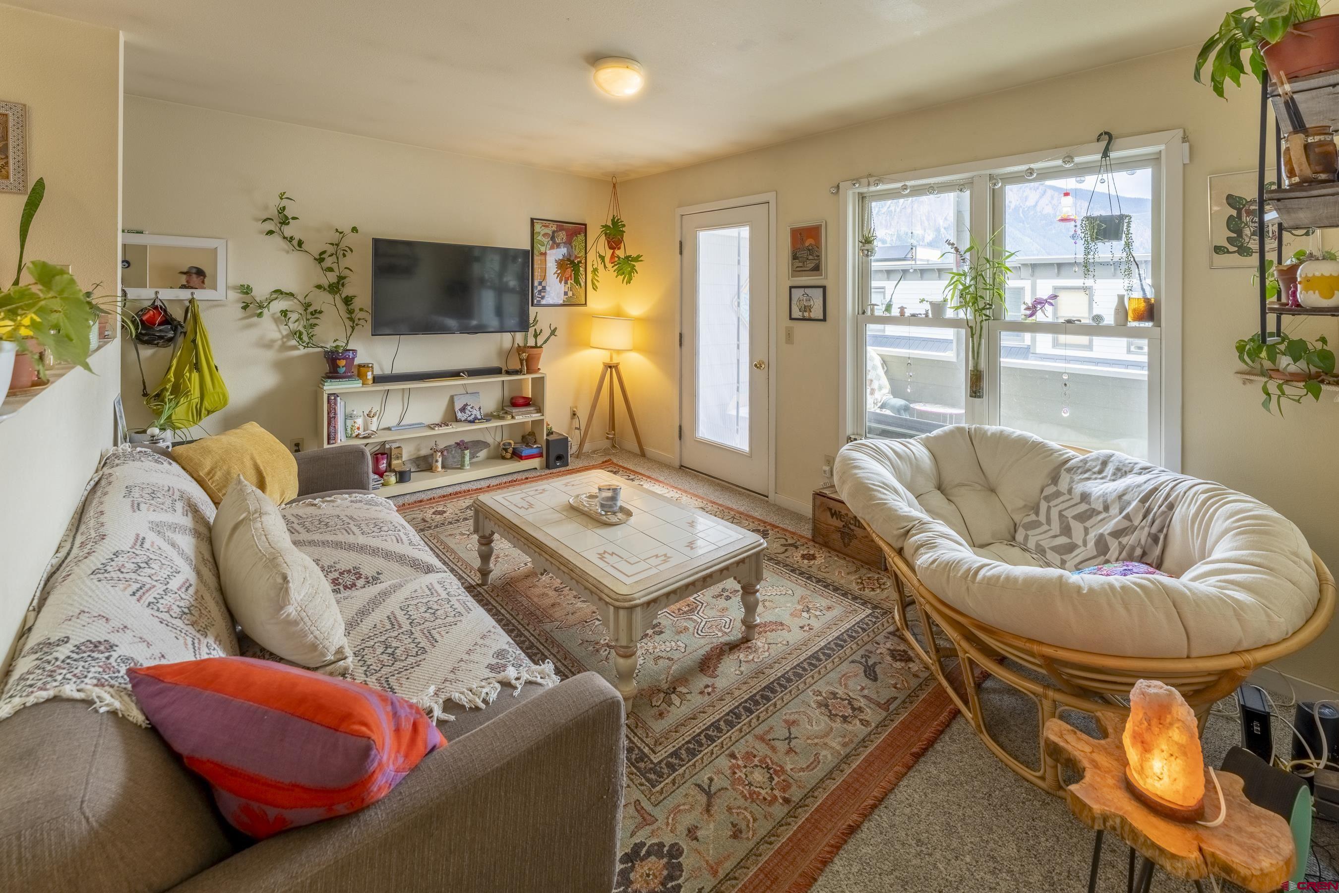 A rare opportunity to live in town, Unit #2-A at the newly offered Cana Condominiums is a spacious 2-bedroom, 1-bath second-floor unit with stunning views of Crested Butte Mountain. Located on the south side of the building, this unit features an open-concept floorplan with generous living, dining, and kitchen areas. Enjoy morning sunrises and extra storage space from the oversized 60-square-foot covered deck—perfect for bikes and gear. Natural gas in-floor heat keeps your toes warm in the winter months. There's also a private closet per residential unit in the hallway housing a full-size, stack washer/dryer. This prime location is ideal for locals, with restaurants, bars, grocery stores, shops, the skate park, ice rink, and even the bus stop all within walking distance. The free bus provides convenient access to the ski area in winter. This unit includes two dedicated parking spaces per the plat. Important Note: A restrictive covenant is in place and applies to all residential units: "Units must be owner occupied or used as long-term rentals unless the owner also owns a non-residential unit in the building." Possible Owner financing with 30% down. Built in 2001 by Christopher Klein Construction, it's one of the newer buildings on the street and received a fresh exterior paint job in 2023. The building features a durable Carlyle brand rubber roof. The first floor contains three sunny retail/office spaces, while the second floor includes two 2-bedroom units flanking a smaller 1-bedroom unit. Access to the residential units is via an interior stairwell on the building’s east side. Association Dues Include: natural gas, water & sewer, electric, phone, cable TV, trash, snowplowing, bldg maintenance, common areas. Owners are responsible for their own WIFI and taxes. Dogs may be allowed. Per covenants they are not, but that rule could possibly be changed.