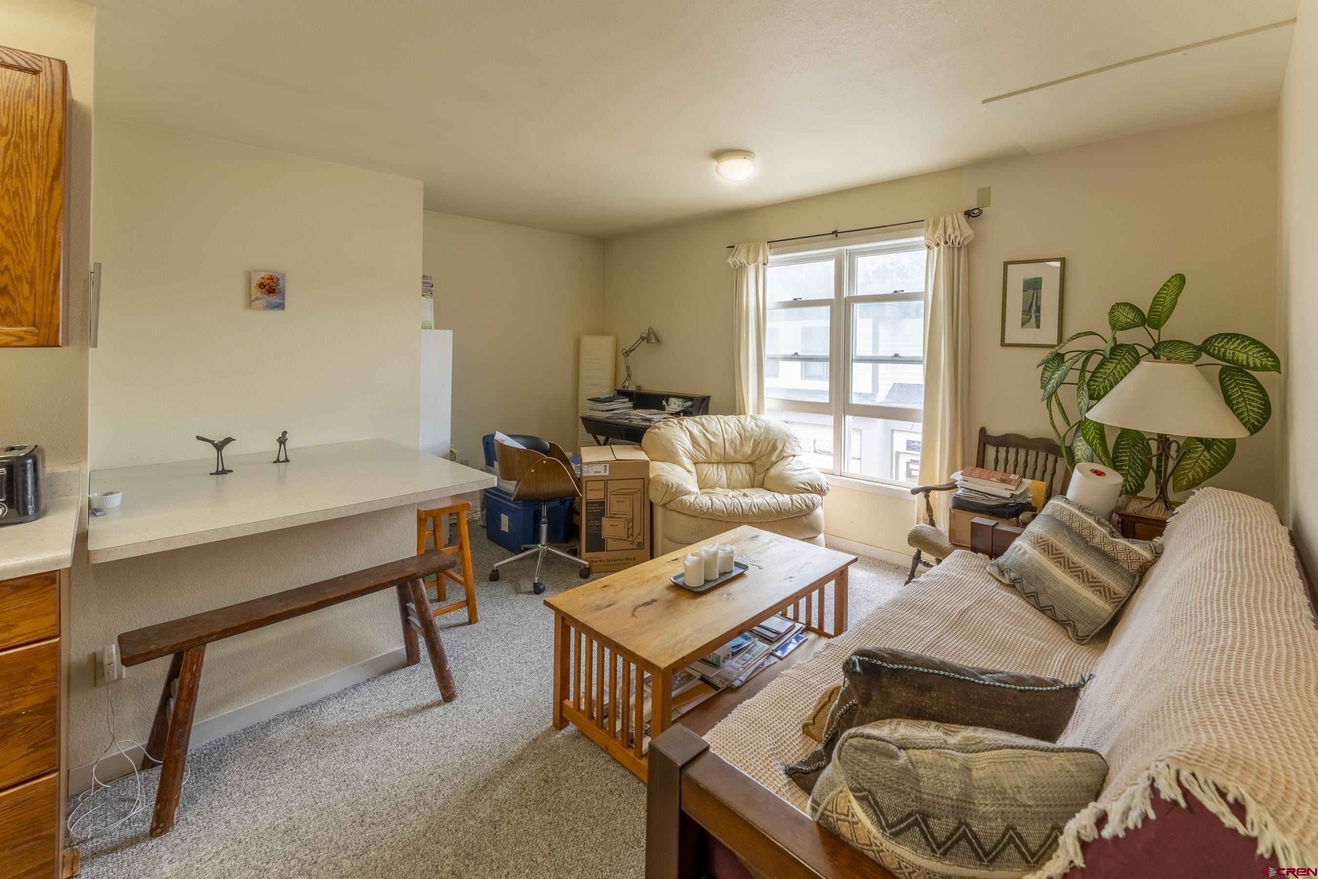 A unique opportunity to live in town, Unit #2-B at the newly offered Cana Condominiums is a super rare 1-bedroom, 1-bath second-floor unit with stunning views of Crested Butte Mountain. Located on the east side of the building, this unit features an open-concept floorplan with generous living and kitchen areas. Enjoy morning sunrises with natural gas in-floor heat to keep your toes warm in the winter months. There's also a private closet per residential unit in the hallway housing a full-size, stack washer/dryer. This prime location is ideal for locals, with restaurants, bars, grocery stores, shops, the skate park, ice rink, and even the bus stop all within walking distance. The free bus provides convenient access to the ski area in winter. This unit includes one dedicated parking space per the plat. This is the first time this building is being offered as condominiums, with the process 100% complete. Important Note: A restrictive covenant is in place and applies to all residential units: "Units must be owner occupied or used as long-term rentals unless the owner also owns a non-residential unit in the building." Possible Owner financing with 30% down. Built in 2001 by Christopher Klein Construction, it's one of the newer buildings on the street and received a fresh exterior paint job in 2023. The building features a durable Carlyle brand rubber roof. The first floor contains three sunny retail/office spaces, while the second floor includes two 2-bedroom units flanking a smaller 1-bedroom unit. Access to the residential units is via an interior stairwell on the building’s east side. Association Dues Include: natural gas, water & sewer, electric, phone, cable TV, trash, snowplowing, bldg maintenance, common areas. Owners are responsible for their own WIFI and taxes. Dogs may be allowed. Per covenants they are not, but that rule could possibly be changed.
