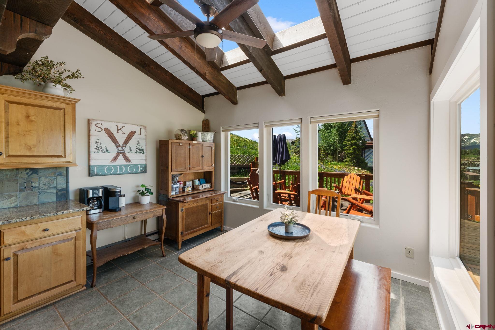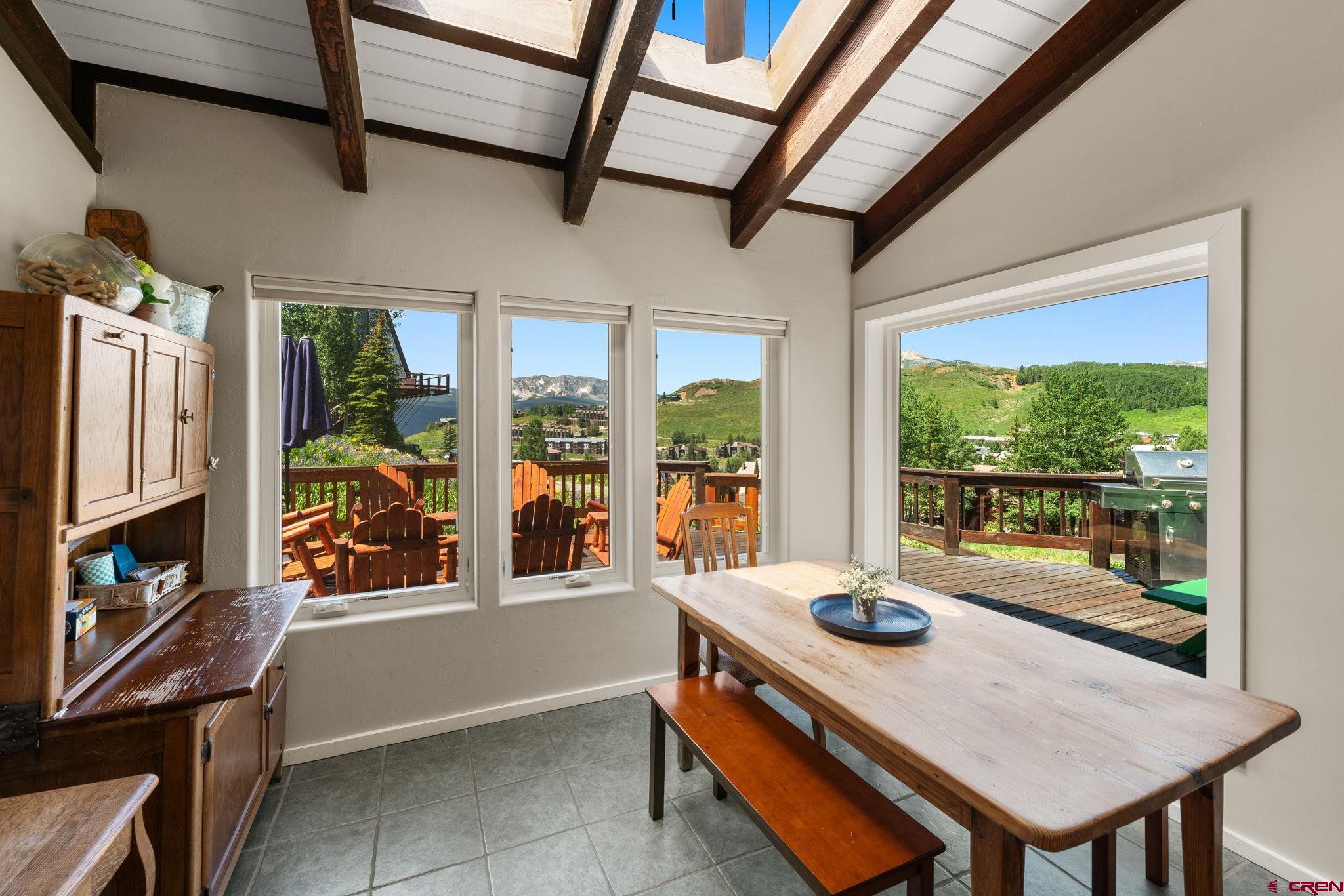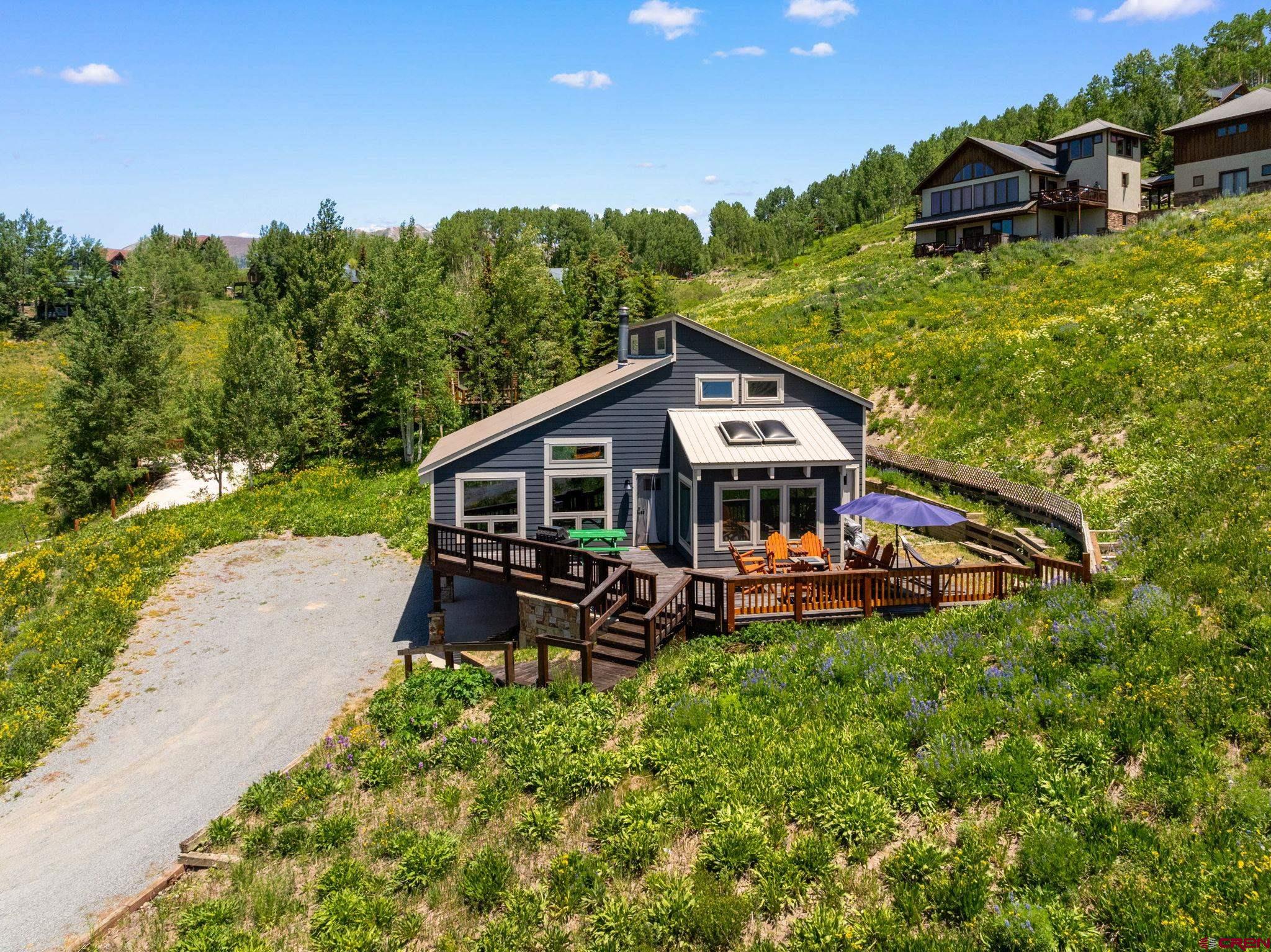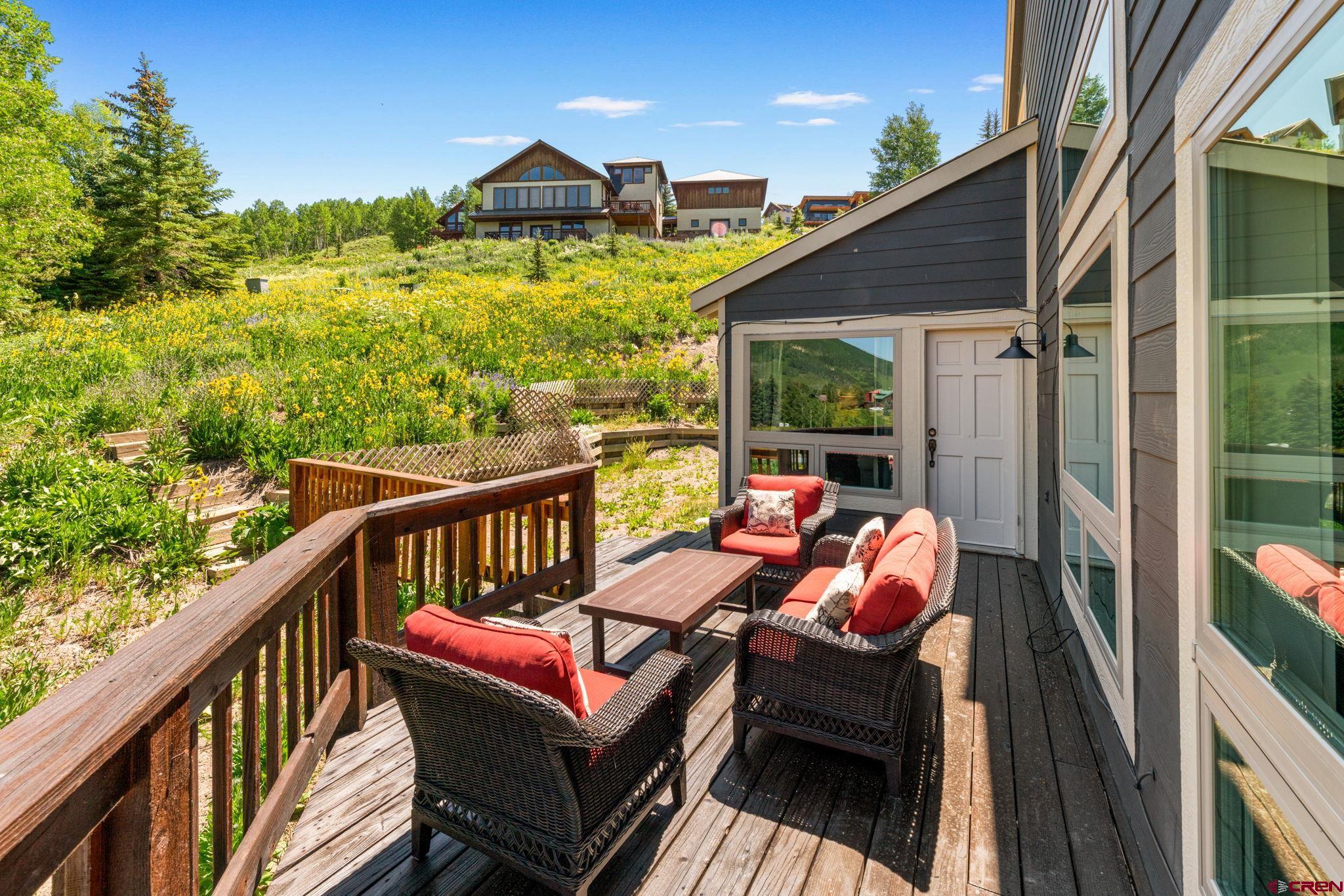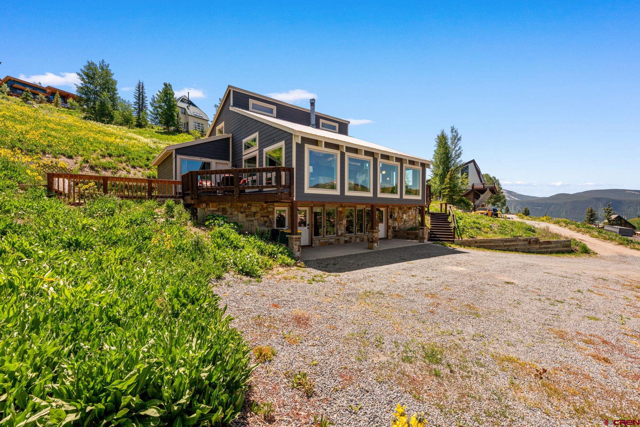 Welcome to 32 Whetstone Road, a spacious and inviting mountain retreat nestled in the heart of Mt. Crested Butte. This beautifully maintained home offers 5 bedrooms, 4 bathrooms, and 3,338 square feet of open living space, thoughtfully designed to embrace the stunning natural surroundings. Perched on an elevated and generous 0.64-acre lot, the property is surrounded by wildflowers and showcases amazing views of the surrounding mountains. The main living area is expansive and filled with natural light, thanks to three walls of windows, perfect for enjoying golden-hour sunsets and the ever-changing mountain views. The updated kitchen is ideal for entertaining, featuring a large center island, walk-in pantry, and a charming breakfast nook with skylights. Step outside onto the wraparound deck to grill, dine al fresco, or simply soak in the summer mountain air. Just off the living room is the first of three en-suite bedrooms, a private space with a spacious sleeping area, cozy seating nook, private deck, and a luxurious bathroom complete with double vanity, walk-in shower, and its own sauna. Downstairs, the walk-out lower level includes two additional en-suite bedrooms. One features a king-size bed, lounge area, coffee bar, mini fridge, and direct access to the yard this is also ideal as a second living room, media room, or guest suite. The adjacent suite includes its own full living area, private bath, and separate outdoor entry. Upstairs, two more bedrooms share a well-appointed bathroom with a double vanity and tile walk-in shower, offering plenty of space for family or guests. The current owners have made thoughtful updates, including UV-protective windows, new furnishings, fresh gravel for the driveway, and a fenced in back yard, perfect for kids and pets. This home is also a highly successful short-term rental, earning $101,320 between June 2024 and March 2025, offering immediate income potential for investors or part-time residents. Ideally located just minutes from the Mt. Crested Butte base area and downtown Crested Butteās charming shops and restaurants, the home also enjoys access to the free FirstTracks on-demand shuttle service, offering convenience year-round. Offered fully furnished and turn-key, 32 Whetstone Road is a rare opportunity to own a spacious, income-producing mountain home in Mt. Crested Butte!