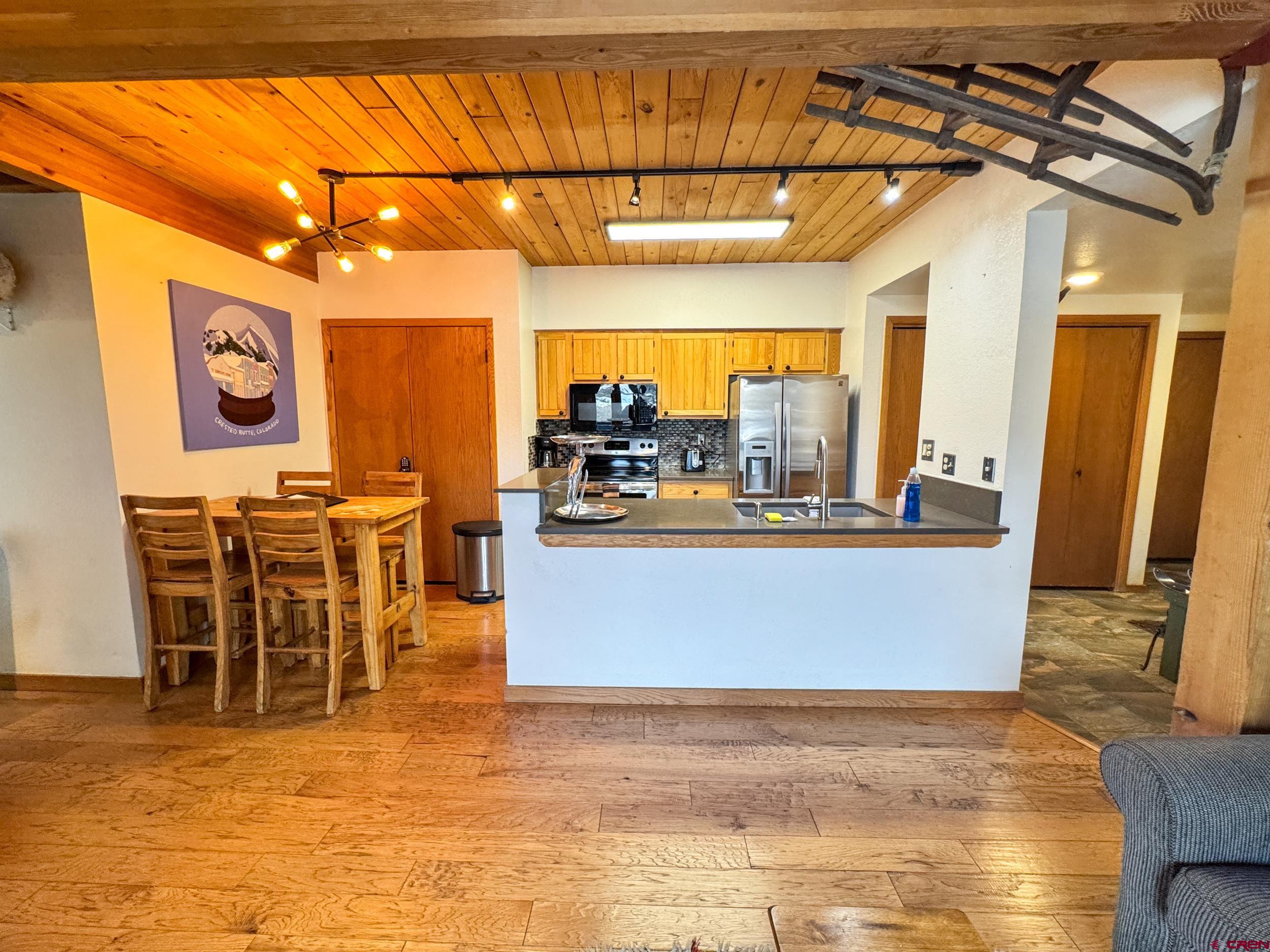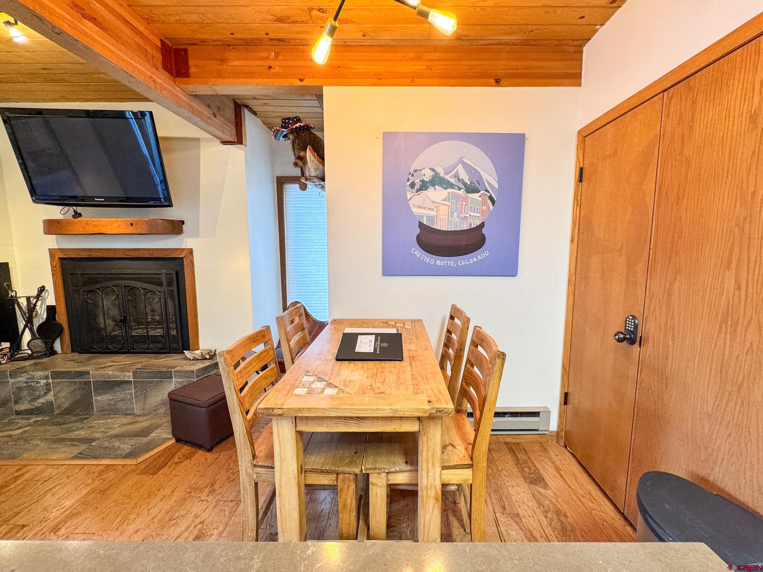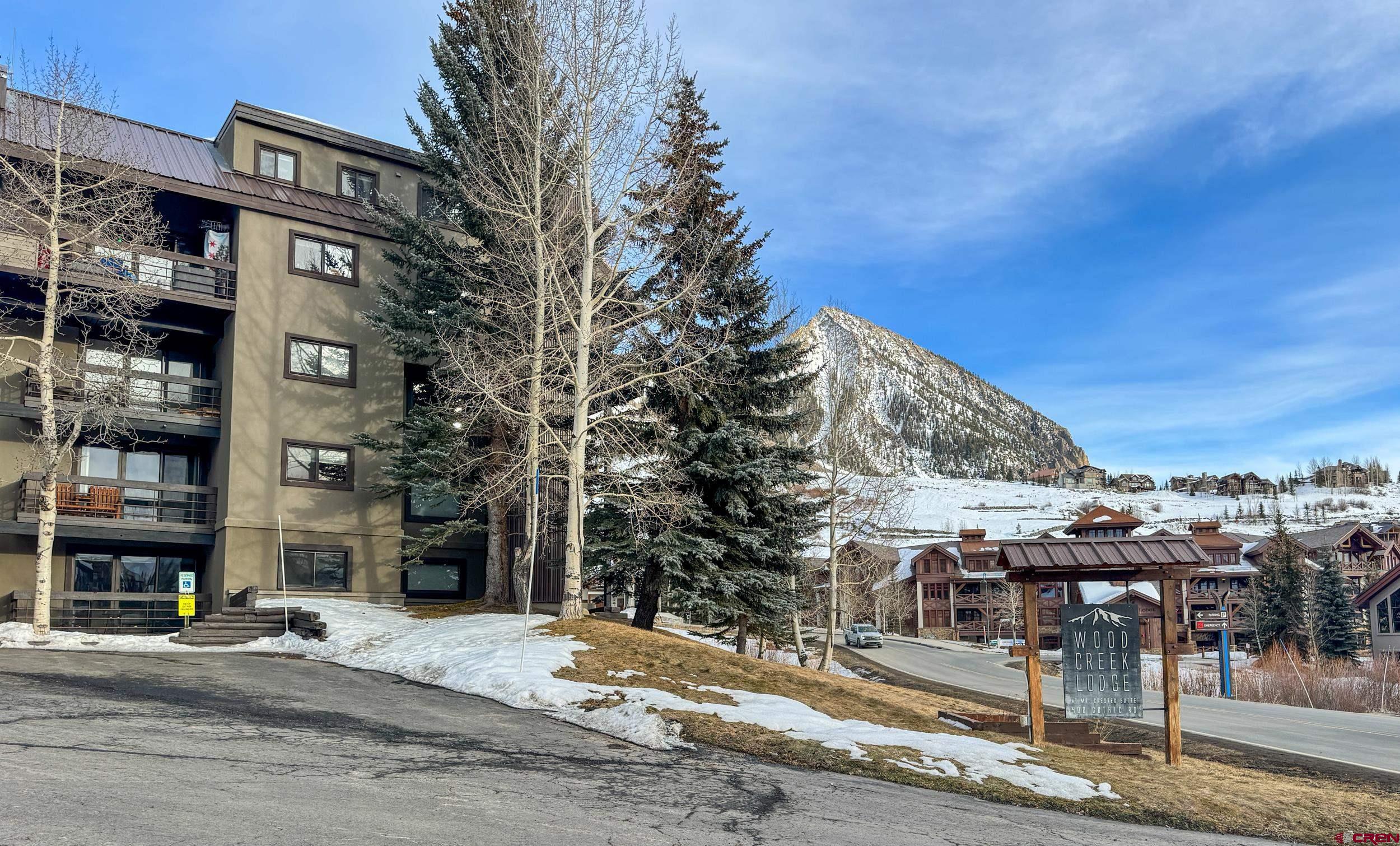 Wood Creek Unit 305 places you in the heart of Mt. Crested Butte, where effortless mountain living meets year-round adventure. This furnished, move-in-ready one-bedroom, one-bath condo offers a bright open-concept layout that feels both welcoming and functional, ideal as a personal retreat or a smart investment opportunity. Natural light fills the living and dining areas, complementing warm wood floors and a classic wood-burning fireplace that creates the perfect alpine atmosphere after a day outdoors. Slide open the door to your private balcony to take in mountain views and fresh Colorado air, an inviting space for morning coffee or relaxing at the end of the day. Positioned just a short walk from the West Wall and Peachtree lifts of Crested Butte Mountain Resort, ski access couldn’t be more convenient. Warmer months bring equally easy access to hiking and biking trails right outside your door. The free town shuttle stops at the complex, offering quick transportation to the resort base area as well as historic downtown Crested Butte, where restaurants, shopping, and year-round events are easily within reach. Wood Creek Lodge enhances the ownership experience with amenities including an elevator, hot tub, welcoming lobby, the option to rent from the HOA private ski lockers, and laundry facilities — features that owners and guests alike appreciate. With a strong rental history already in place, this property offers appealing flexibility for those considering part-time use with supplemental income. Whether you’re seeking a personal mountain retreat or an investment opportunity, Wood Creek Unit 305 offers a chance to be at the center of Mt. Crested Butte’s year-round outdoor lifestyle.