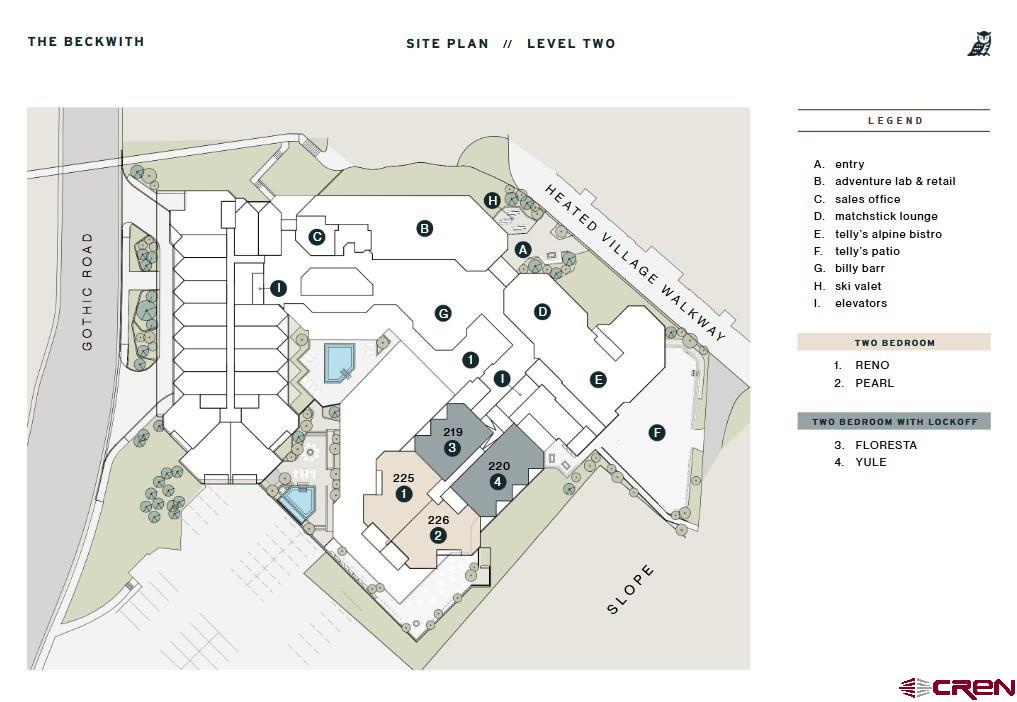 To-be-built Beckwith Residence 225 is a standout Reno floor plan offering 1,779 square feet of thoughtfully designed living space, two spacious bedrooms, two and a half bathrooms, private balconies that invite the outdoors, including a unique, oversized balcony with it's own private hot tub, Matchstick Lounge, and Telly’s restaurant, billy barr are all on this level! This is true slopeside convenience— no elevator required. Inside, discover mountain-modern interiors are bathed in soft earthy neutrals, warm wood tones, and natural textures that echo the alpine meadows of Crested Butte. Whimsical design details and unexpected pops of color bring a distinctive sense of place and playful sophistication to every room. The gourmet kitchen is a chef’s dream, with natural stone countertops, high-end appliances, a pantry, and generous space for culinary exploration and entertaining. A custom millwork bench and cubbies at the entry make gear organization effortless. The main living area features wide-plank wood flooring, a sleek electric fireplace, and easy access to a sunny balcony for seamless indoor-outdoor flow. The primary suite is a private sanctuary, complete with a millwork wardrobe, private balcony, and a spa-inspired en-suite bath featuring Kohler fixtures and radiant finishes. The secondary bedroom and flex/bunk room each offer tranquil retreats styled with mountain-inspired textures, and elevated privacy— ideal for hosting guests. Additional conveniences include a stylish powder room with bespoke wall coverings, in-unit laundry with a stacked washer and dryer, and secure owner’s gear storage. Whether you’re watching the sunset over Mount Emmons, soaking up courtyard energy from your balcony, or walking out to the slopes for a bluebird day on the mountain, Residence 225 delivers relaxed luxury, unbeatable access, and connection to everything that makes mountain town living magical. The Beckwith is the only ski-in, ski-out resort just steps to the lift in Crested Butte's base area. Replete with a four-star boutique hotel, private residences, a mountain & social club as well as world-class amenities including restaurants, luxurious spa, adventure concierge, and ski valet, a multi-phased reimaging of Elevation Hotel & Spa will transform almost every space at the resort. Construction will start this April with expected completion in the Winter 26-27 ski season. Inquire today in the Sales Center on the main floor of Elevation for more information.