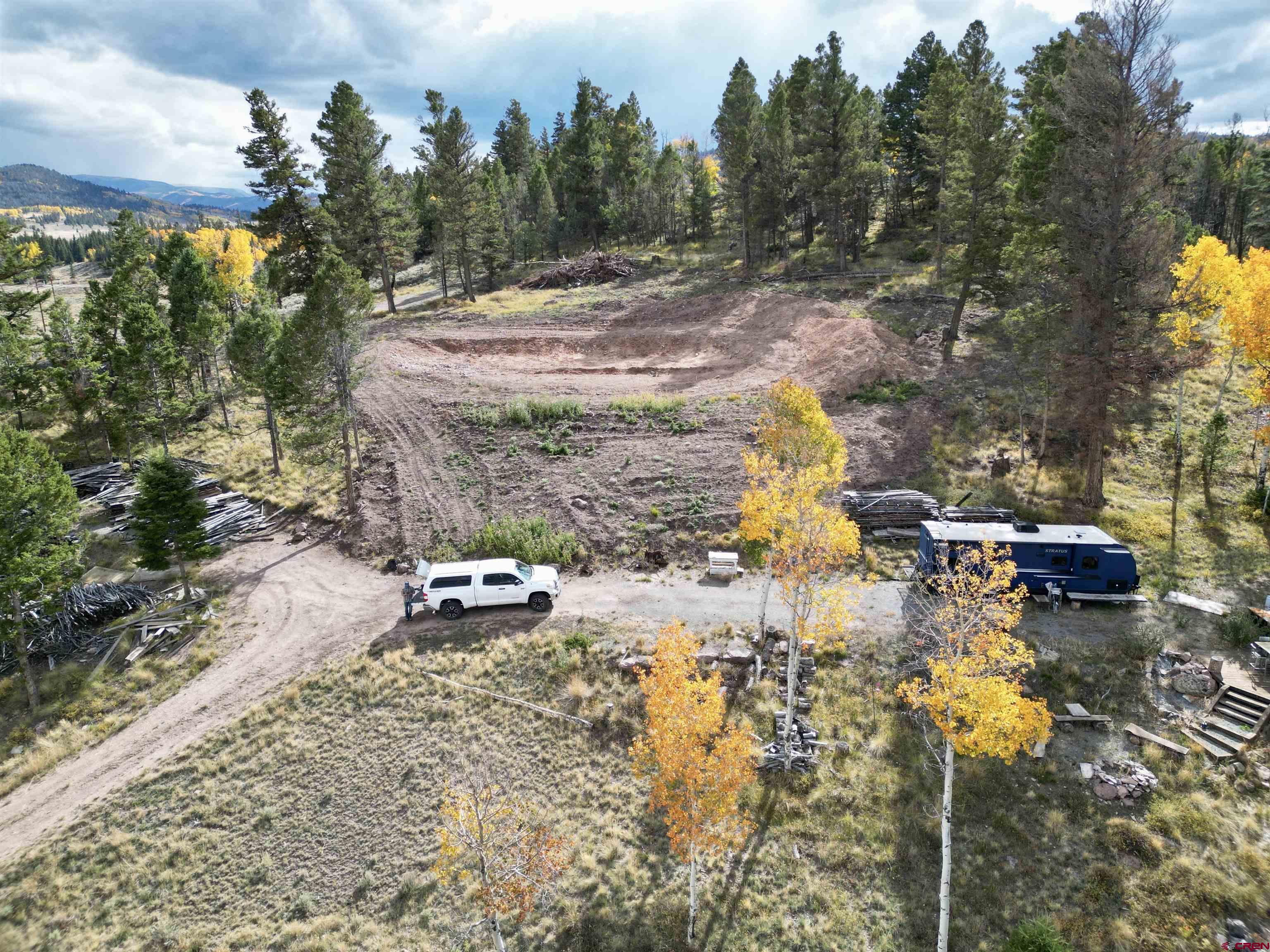 Escape to your very own 35-acre mountain paradise, nestled along the picturesque Blue Mesa Cutoff Road (County Road 25). This stunning property offers a unique blend of natural beauty and practical amenities, making it the perfect getaway for outdoor enthusiasts and those seeking a tranquil retreat. Key features include, No HOA, enjoy the freedom to create your dream escape without the restrictions of a homeowners association. The property has milled rough sawn Douglas fir sourced right from the land, stacked and ready for your building projects. Conveniently situated between Gunnison, Lake City, and Montrose, you’ll find yourself close to an array of recreational activities. The Lake Fork of the Gunnison River is nearby, offering exceptional fishing opportunities. With endless possibilities for outdoor recreation, from hiking and hunting to water sports at Blue Mesa—just 13 miles away—you’ll never run out of adventures to embark on. A completed gravel private drive ensures easy access throughout the year, making this property a reliable escape no matter the season. Surrounded by mature aspens and pines, the property boasts updated landscaping that enhances its natural charm, while also providing special consideration for sage grouse habitat. The parcel is primed for your dream home or could serve as an equestrian center, hunting cabin, or livestock raising venture. The approved driveway leads to a private building site, offering privacy and tranquility. Utilities on-site, benefit from 400 amp service with a meter extending 600 feet to the homesite. A finished 200-square-foot utility/storage building is included, complete with a full-size refrigerator and washer/dryer for convenience. A well is installed, pumping 7 gallons per minute, and the septic system is approved and functional for RV use or future home construction. The RV currently sits on a pedestal with both 30 amp and 50 amp service. This property truly offers a rare opportunity to create your ideal mountain retreat. Whether you're looking to build a forever home or a weekend escape, this stunning 35-acre parcel is ready and waiting for you to make it your own. Don’t miss out on this chance to embrace the beauty of mountain living!