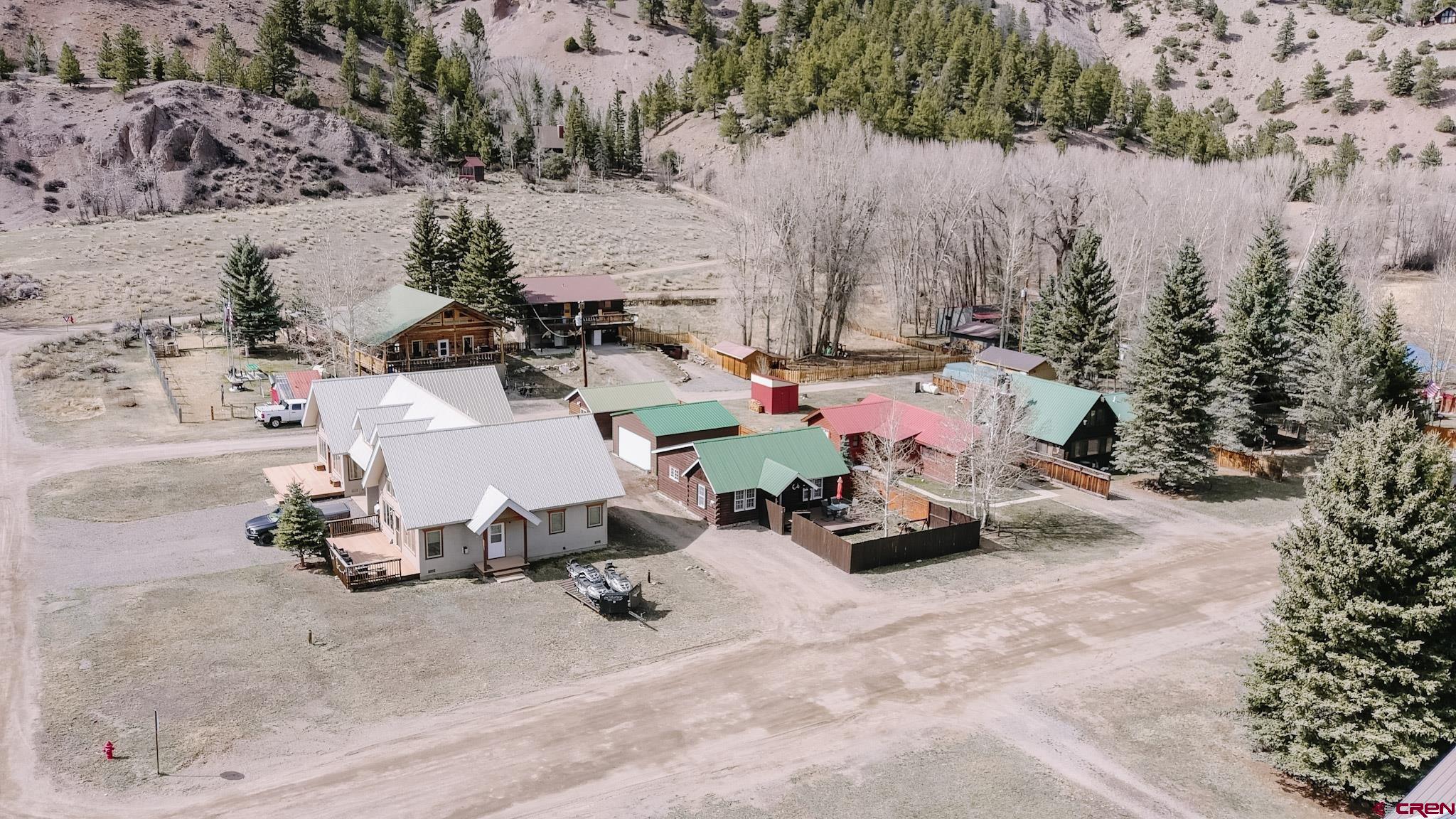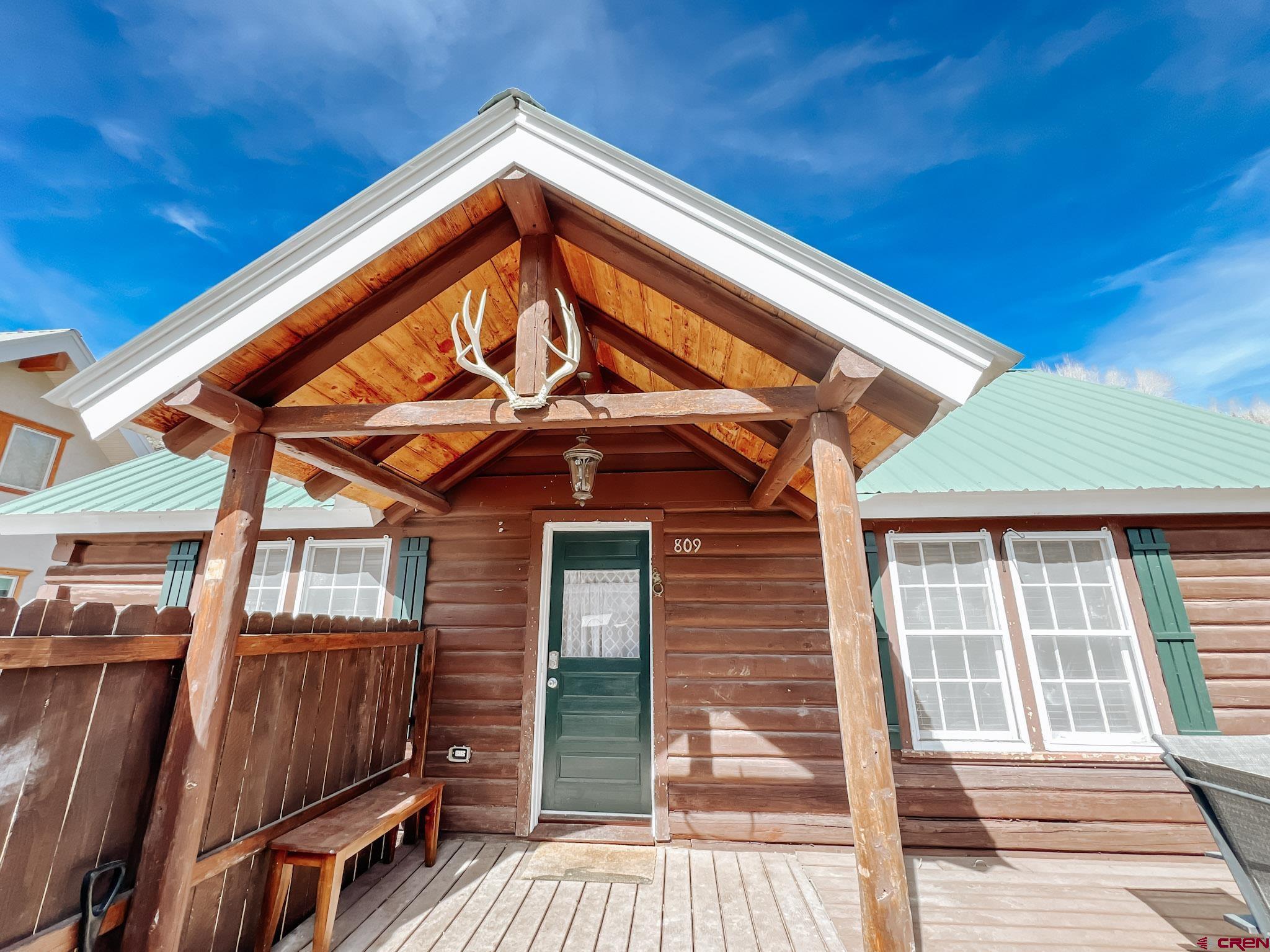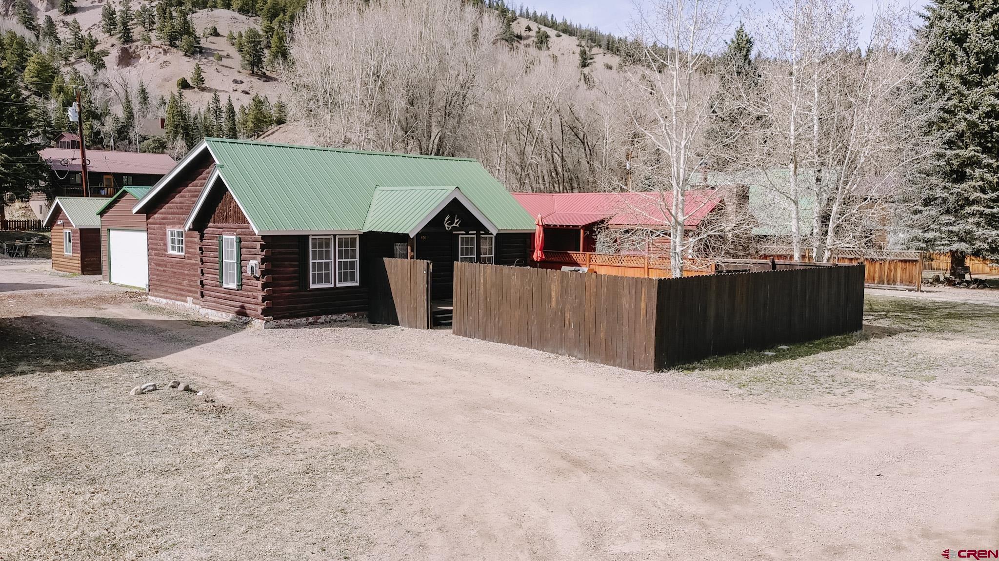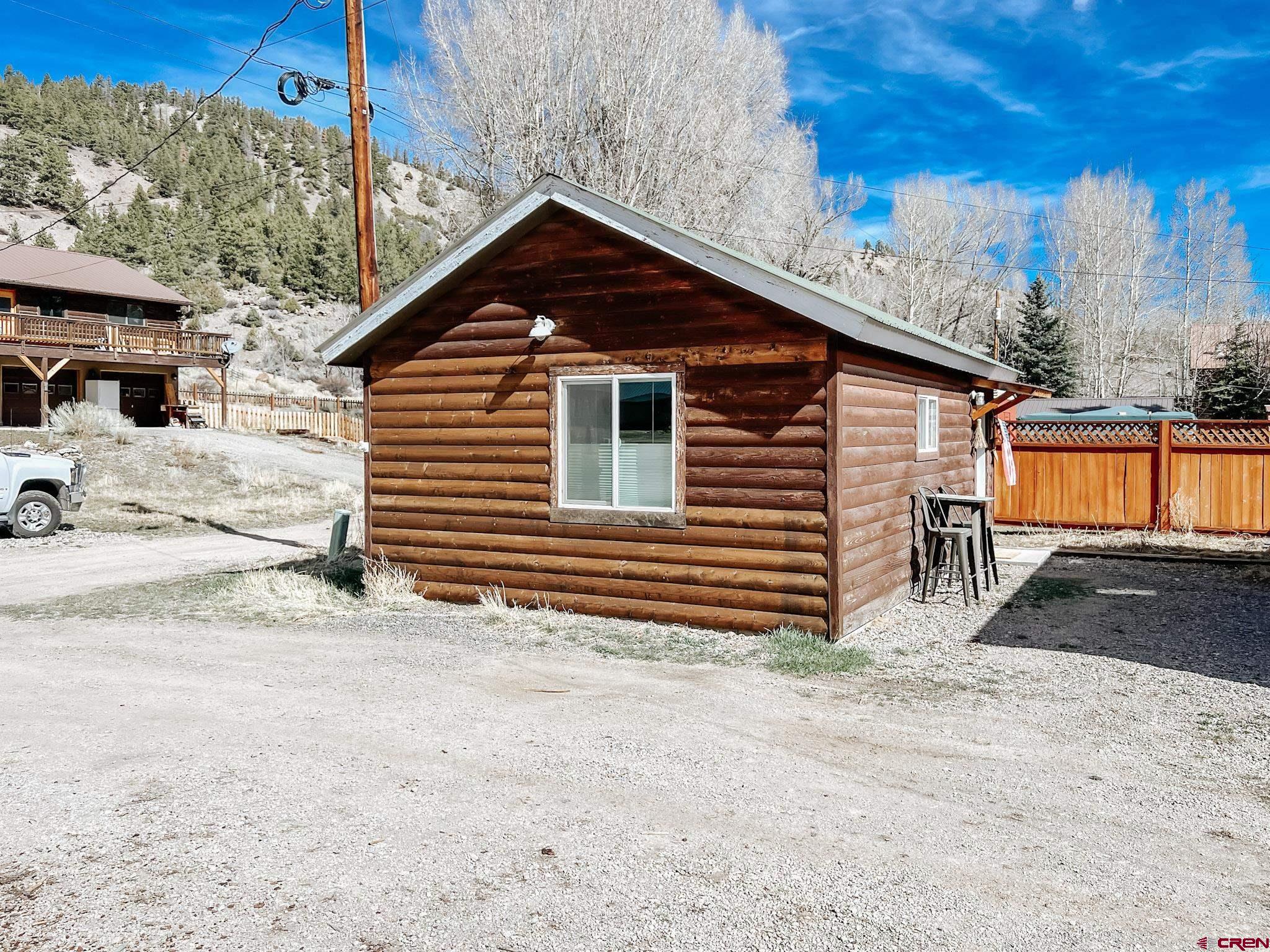 Charming mountain log cabin set on two town lots on Silver Street, just moments from Pete’s Lake and surrounded by beautiful mountain views. Originally built in 1945 and relocated to Lake City, the home was fully remodeled in 2001, blending historic character with modern comfort. The single-level main residence offers approximately 833 sq. ft. with 2 bedrooms and 1.5 baths, featuring vaulted tongue-and-groove ceilings, a mix of hardwood and carpet flooring, electric baseboard heat, and a cozy propane fireplace in the living room. Step outside to enjoy the partially covered front deck—perfect for taking in the scenic surroundings. Additional highlights include a detached oversized two-car garage built in 2021, along with a separate studio-style dwelling complete with a ¾ bath, efficient Rinnai heater, and in-unit washer and dryer—ideal for guests or rental potential. Conveniently located within walking distance to downtown Lake City, you’ll have easy access to local restaurants, shops, trails, the Lake Fork of the Gunnison River, grocery store, Mountaineer Movie Theatre, and the Lake City Community School. Zoned Limited Multi-Family, the property allows for short-term vacation rentals, making it a fantastic opportunity for both personal use and investment. Buyer to verify square footage.