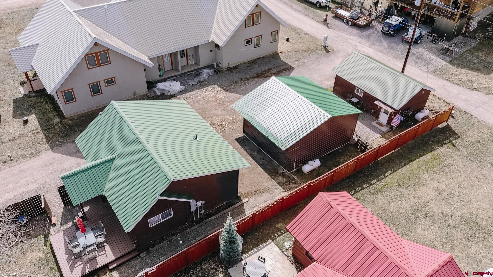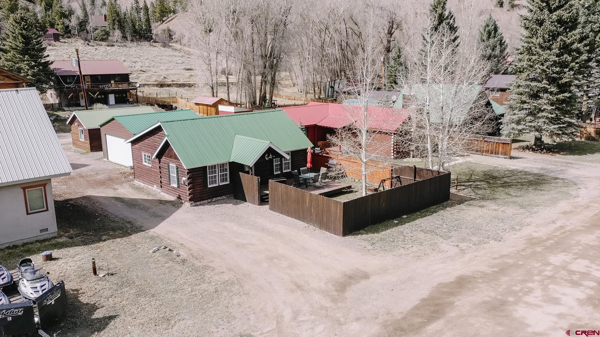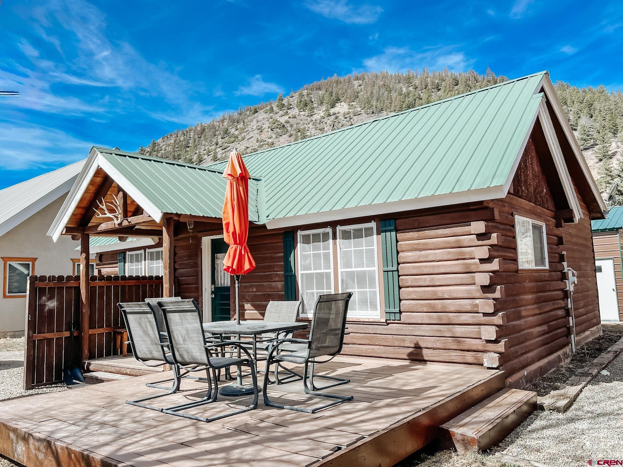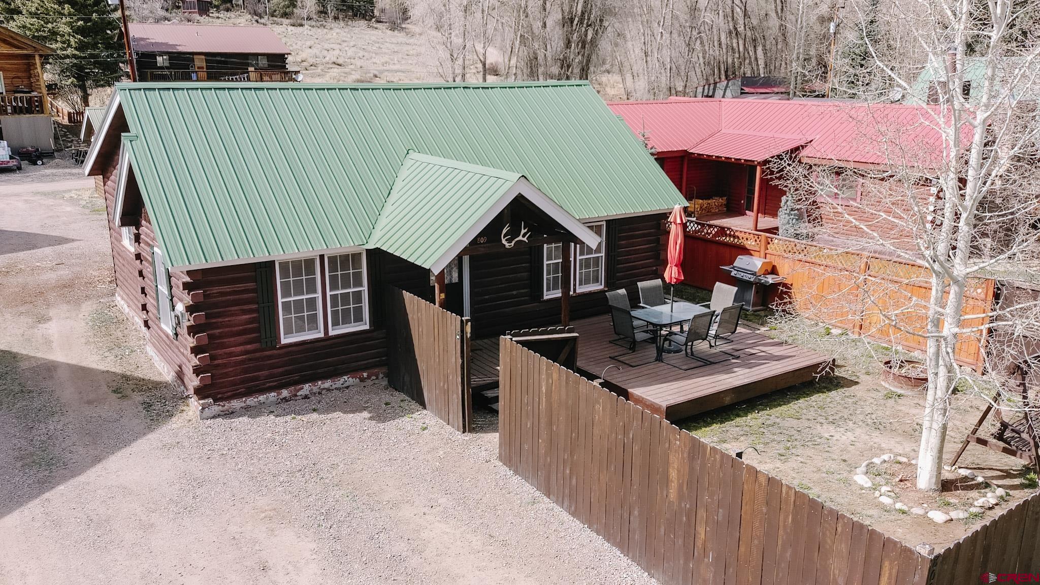 Charming mountain log cabin set on two town lots on Silver Street, just moments from Pete’s Lake and surrounded by beautiful mountain views. Originally built in 1945 and relocated to Lake City, the home was fully remodeled in 2001, blending historic character with modern comfort. The single-level main residence offers approximately 833 sq. ft. with 2 bedrooms and 1.5 baths, featuring vaulted tongue-and-groove ceilings, a mix of hardwood and carpet flooring, electric baseboard heat, and a cozy propane fireplace in the living room. Step outside to enjoy the partially covered front deck—perfect for taking in the scenic surroundings. Additional highlights include a detached oversized two-car garage built in 2021, along with a separate studio-style dwelling complete with a ¾ bath, efficient Rinnai heater, and in-unit washer and dryer—ideal for guests or rental potential. Conveniently located within walking distance to downtown Lake City, you’ll have easy access to local restaurants, shops, trails, the Lake Fork of the Gunnison River, grocery store, Mountaineer Movie Theatre, and the Lake City Community School. Zoned Limited Multi-Family, the property allows for short-term vacation rentals, making it a fantastic opportunity for both personal use and investment. Buyer to verify square footage.