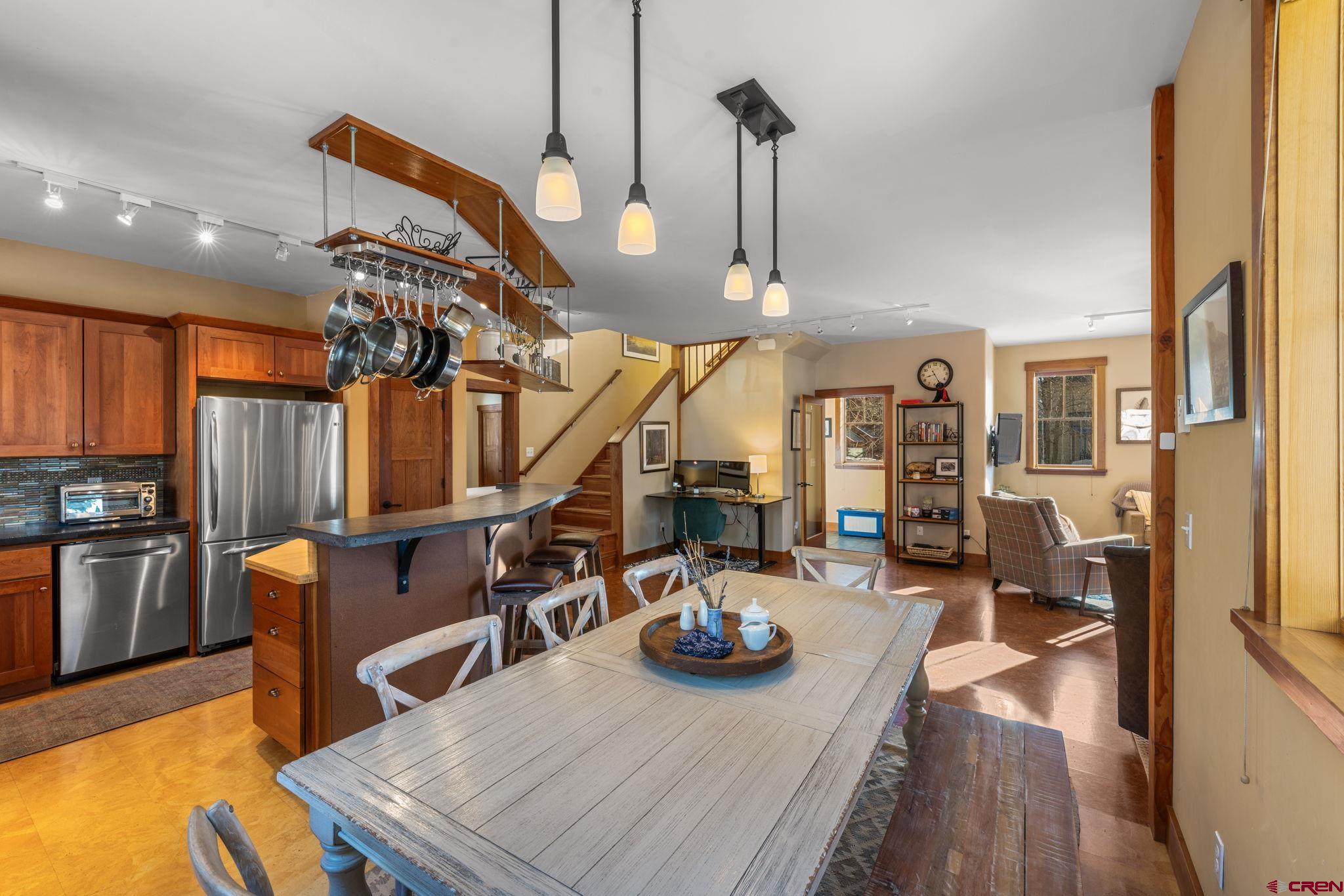 A sweet corner lot location in the quieter end of town, 829 Red Lady basks in great southern and eastern light. The property enjoys mature trees, paver walkways and driveway, landscaping that is fenced for the pets and a big covered front porch. In a town full of flipped floor plans where everyone is climbing stairs to get to the living spaces this home features a traditional floor plan that puts the living and dining areas, a well appointed kitchen and a full bedroom suite on the 1st floor! Upstairs there are two more bedroom suites including the primary. Off the rear alley, the detached and spacious 542 SF garage features a one bed, one bath income producing accessory dwelling unit upstairs.