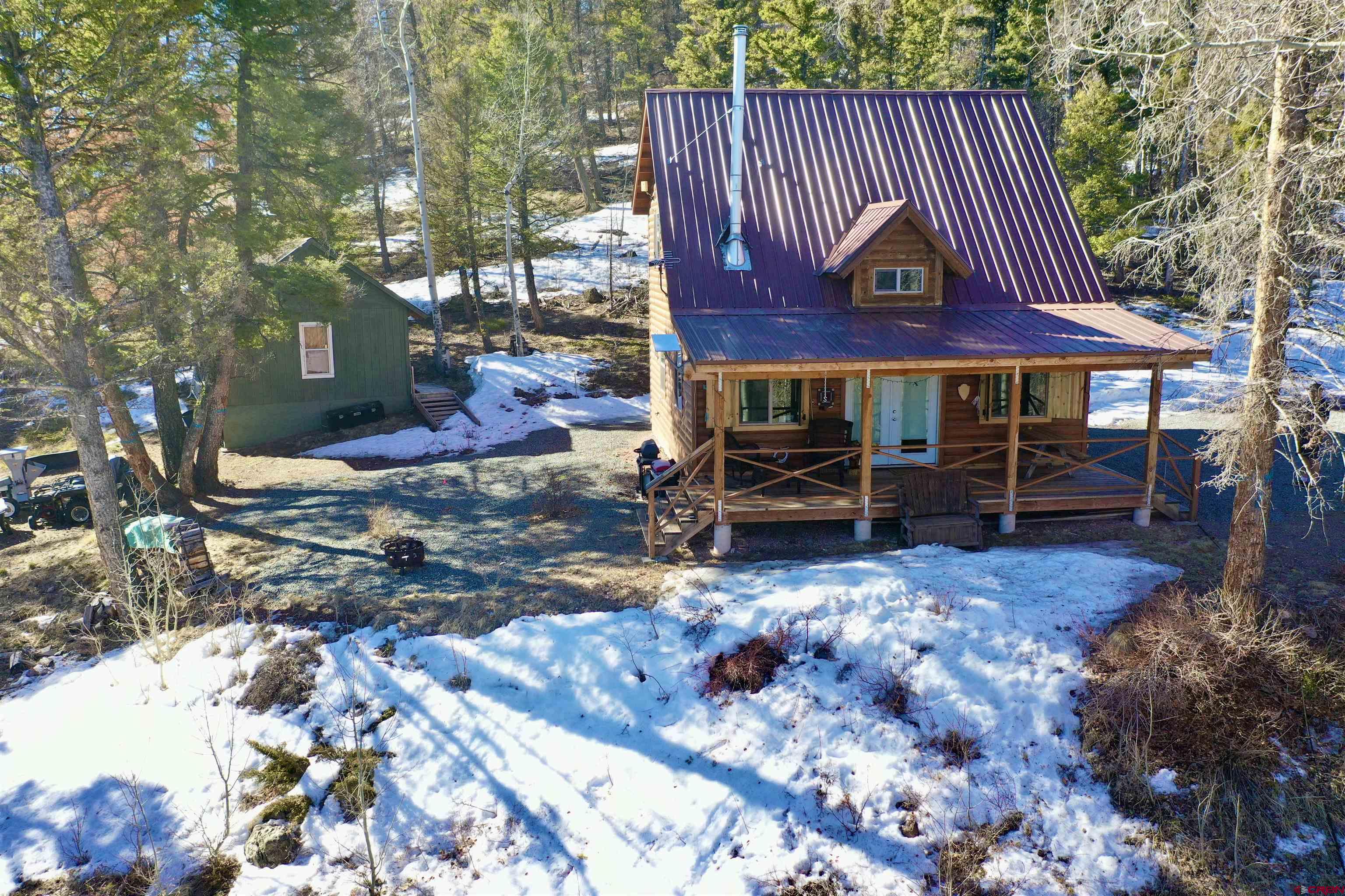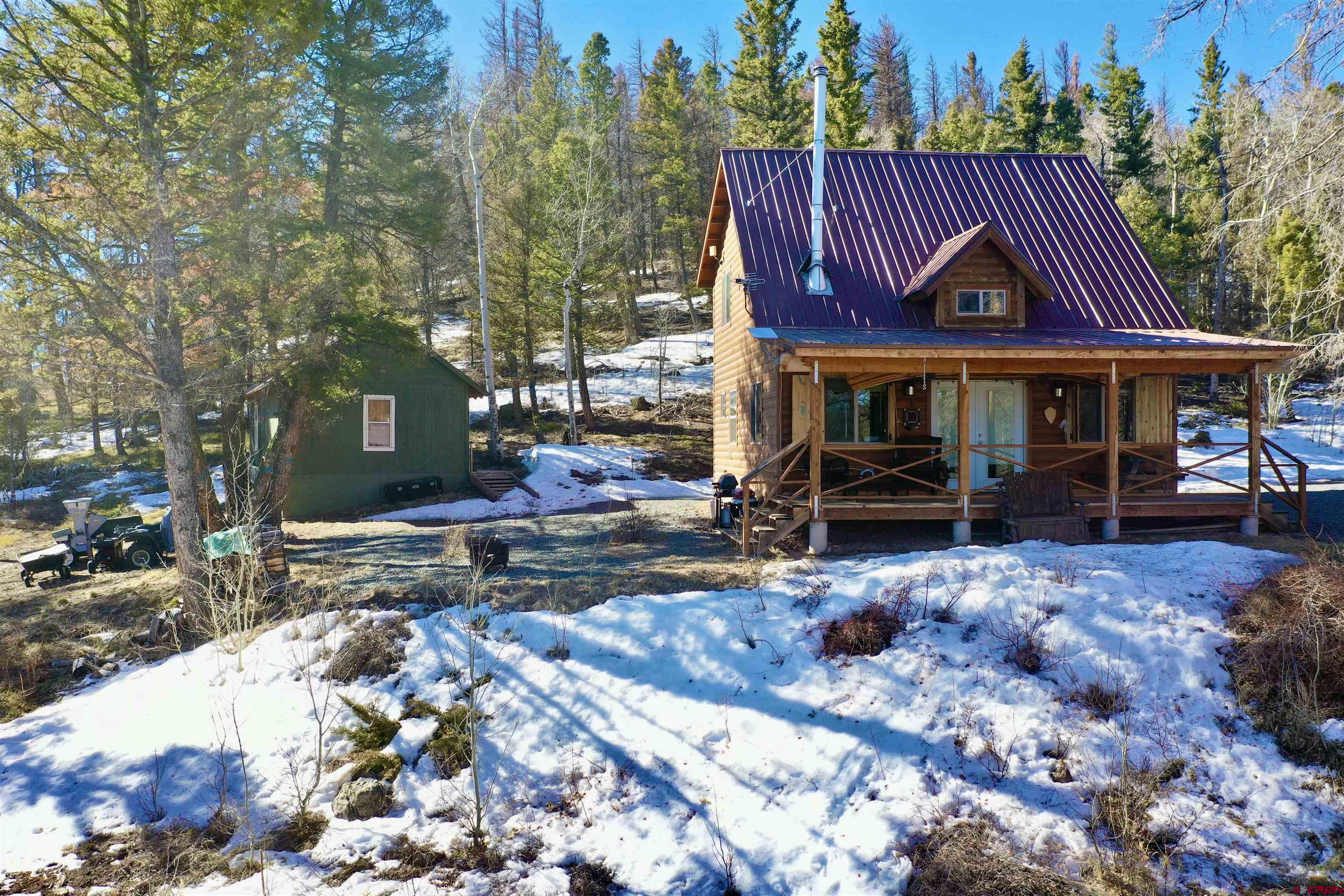 Well-appointed 1 bedroom/2 bathroom cabin with incredible views of the Gunnison Valley, community clubhouse and community pond all located within the Blue Mesa Subdivision in the Powderhorn area. Built in 2014 and nearly 1,000 square feet with full septic system, well and solar panels. This cabin features an open interior with large kitchen, laundry room, and loft bedroom and bathroom. Gorgeous tongue and groove ceiling, storage closets, and a separate building/workshop all on the 6.6 acres that back to Bureau of Land Management lands. You’ll enjoy sitting and relaxing on your covered front porch with views of the West Elk Wilderness in the distance. Cozy up in the evenings with the wood stove and propane wall heater. Stay connected if you need to with Starlink Internet and cell service. There is a 500-gallon in ground propane tank that is owned. Located in Hunting Unit 66, which is a draw only area known for big game hunting. Fishing is nearby at Blue Mesa Reservoir, and there are miles of roads and trails to explore via side by sides. Blue Mesa Subdivision is 45 minutes from Gunnison and has well maintained roads, a stocked fishing pond, a year-round clubhouse, and a welcoming Colorado mountain community. This immaculate cabin is being sold fully furnished, so pack your bags and come enjoy your slice of Colorado’s mountains!!